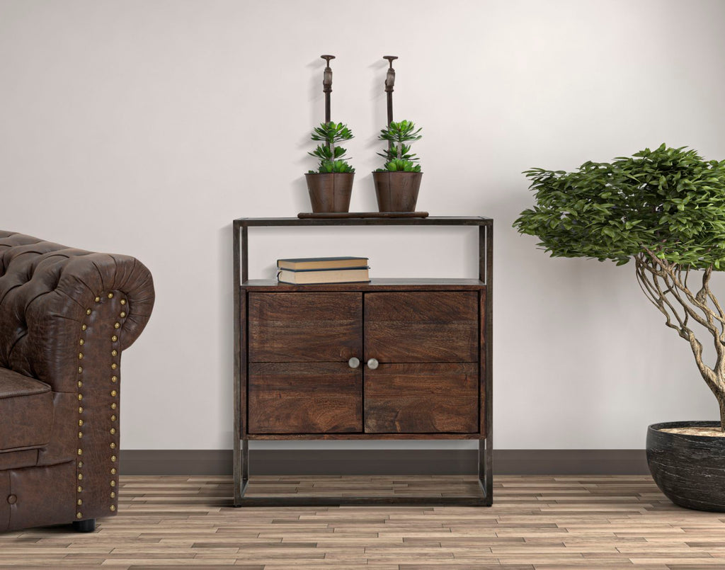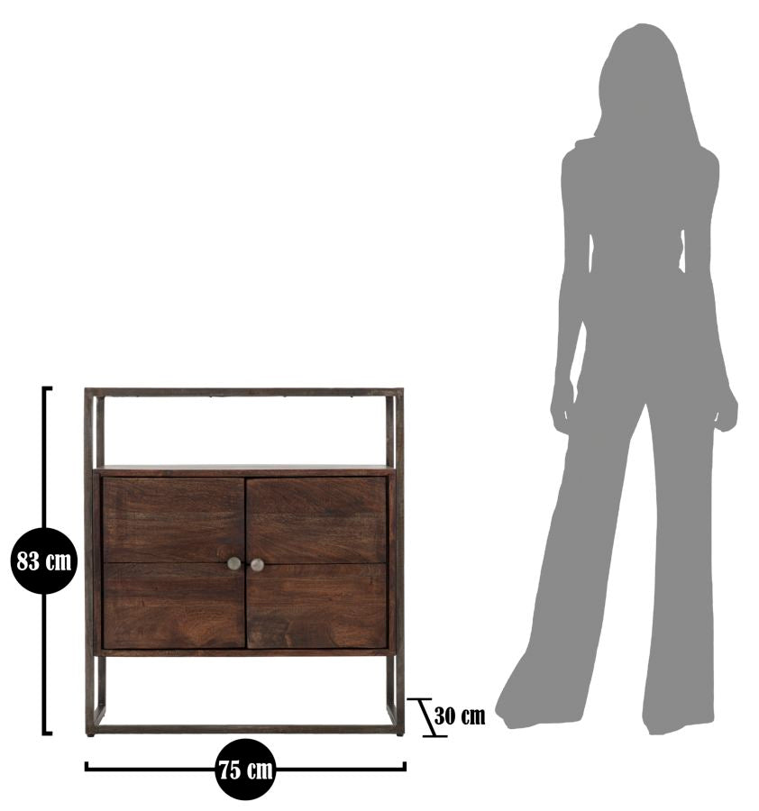 Brennschrank 75x30x83 cm aus Akazienholz und braunem Eisen