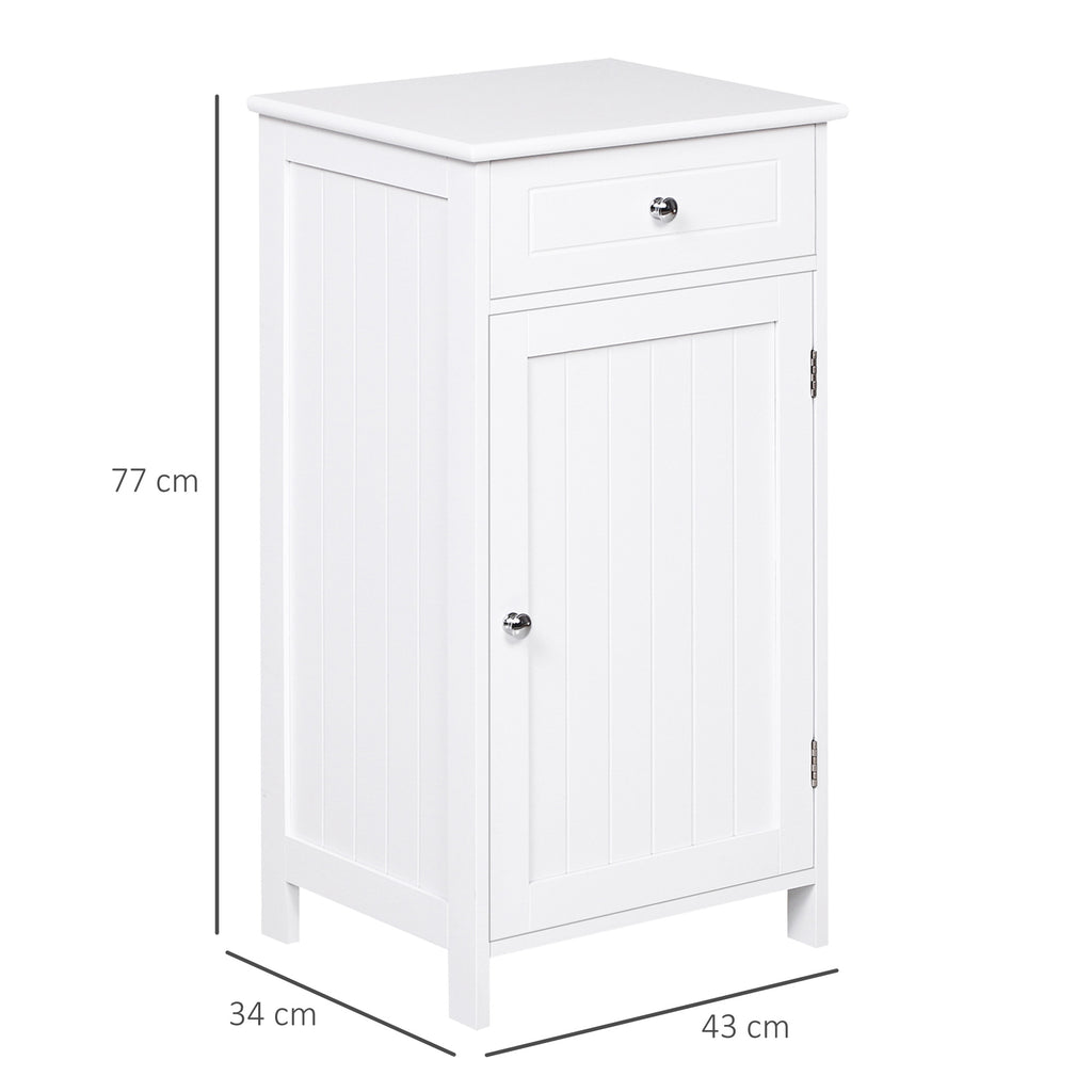 Weißer Badezimmerschrank mit Tür und Schublade 43x34x77 cm