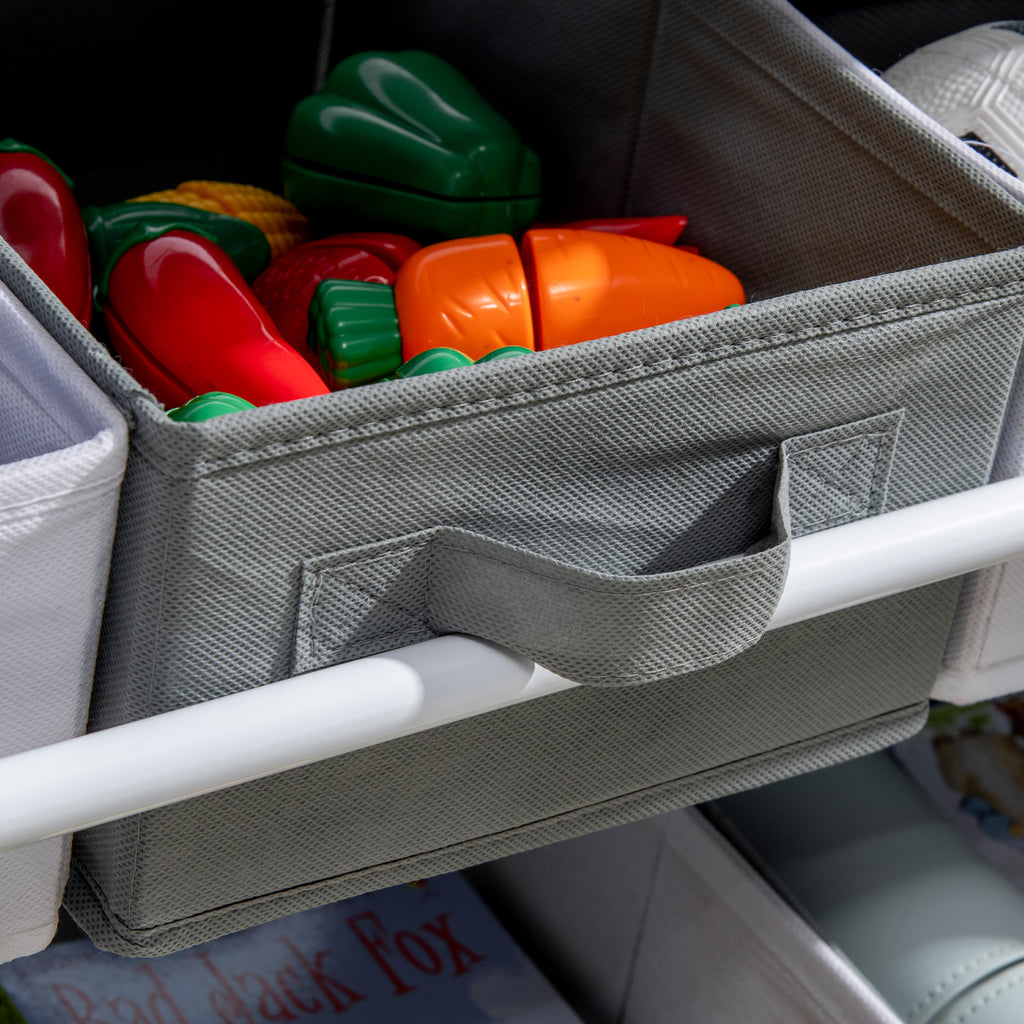 Mobiletto Portagiochi 63x30x60 cm 9 Cestini Rimovibili in MDF e Tessuto Grigio e Bianco