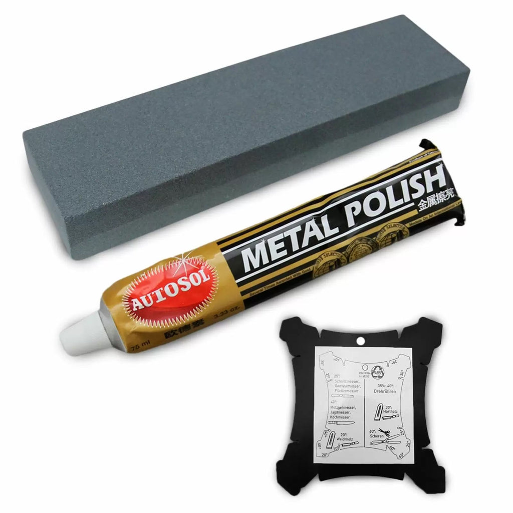 - Lucido per metalli per lustrare i tuoi attrezzi con la coramella di pelle