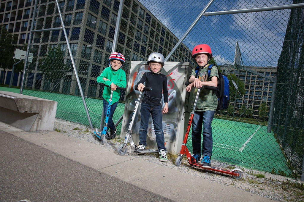 Roller mit zwei Rädern für Kinder und Anfänger. Aus außergewöhnlich leichtem Aluminium, faltbar und kompakt. Maximale Höhe 95 cm, Tragfähigkeit 100 kg.