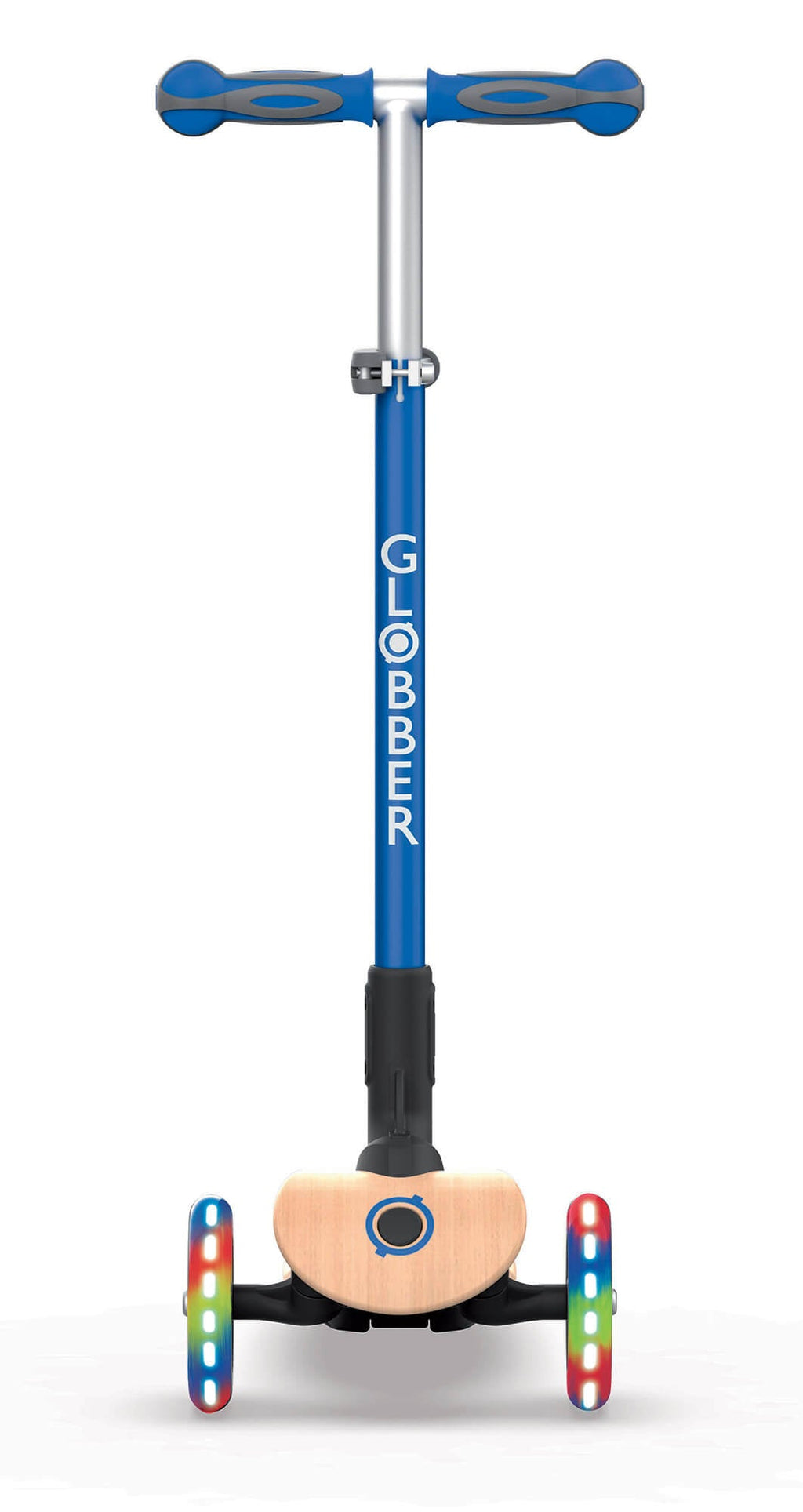 Scooter 3 Räder LED Faltbar 3 Höhen Max 50 Kg Globber Primo Faltbar Holz Blau