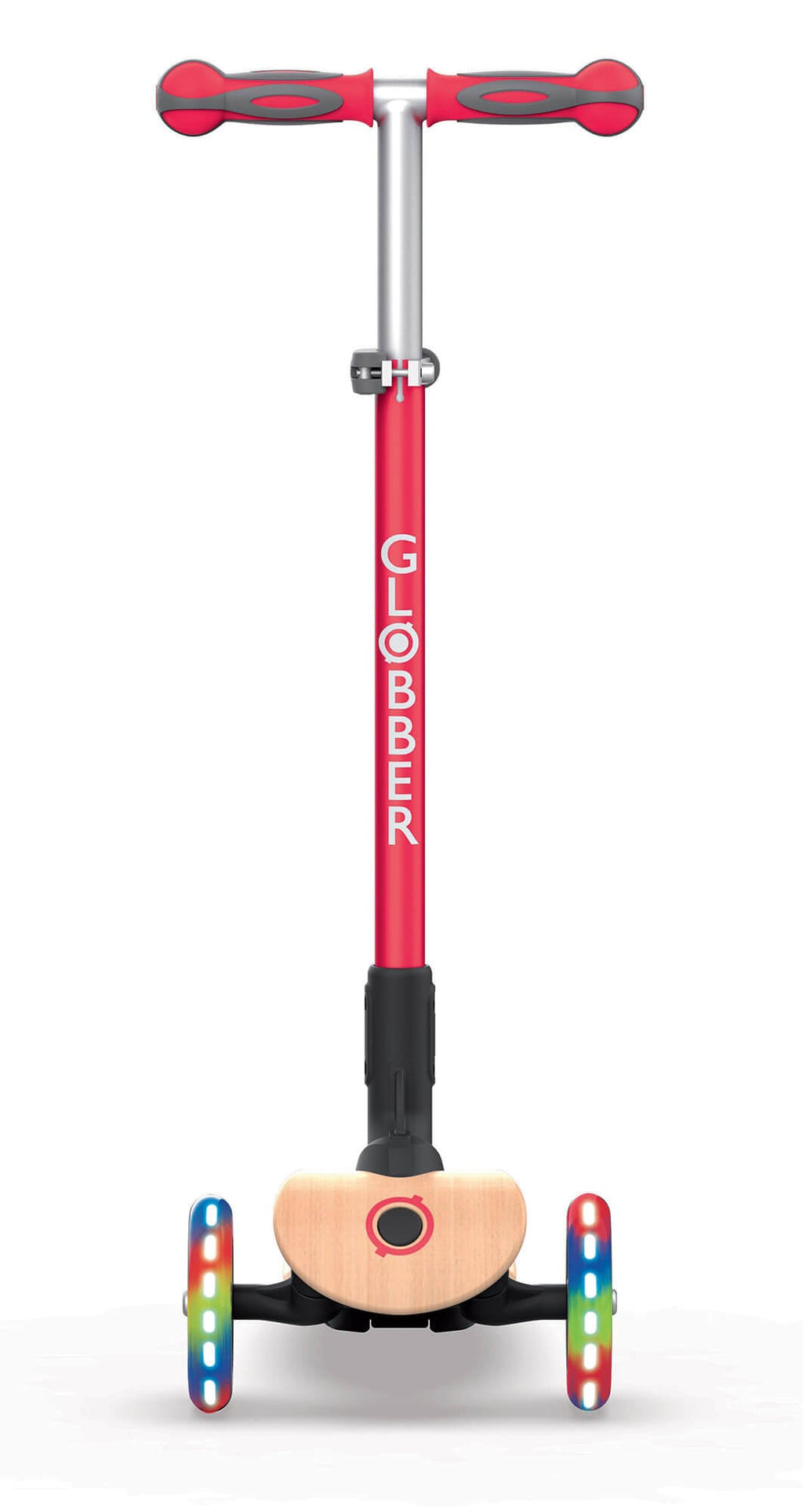 Scooter 3 Räder LED Faltbar 3 Höhen Max 50 Kg Globber Primo Faltbar Holz Rot