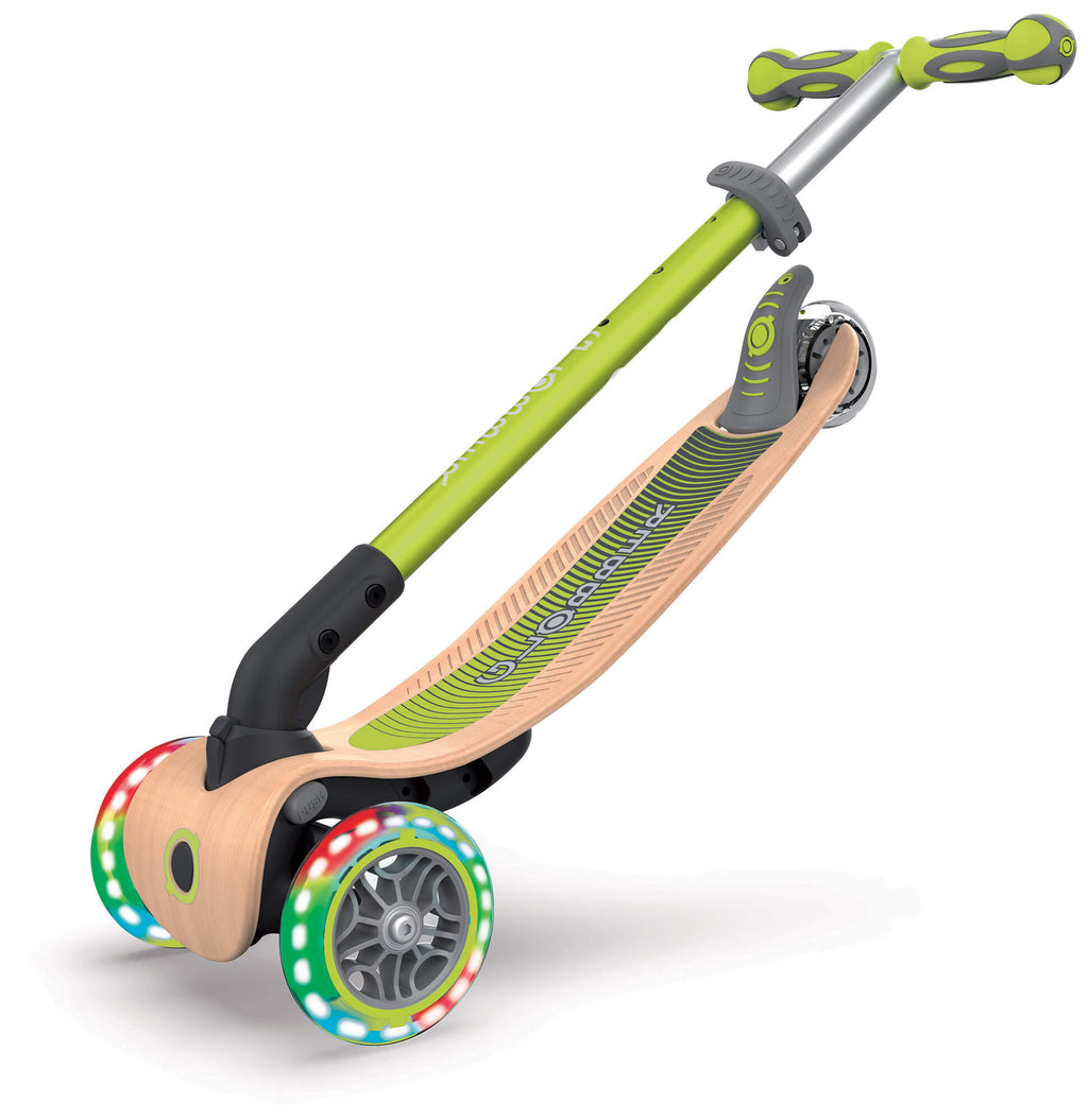 Scooter 3 Räder LED Faltbar 3 Höhen Max 50 Kg Globber Primo Faltbar Holz Lindgrün