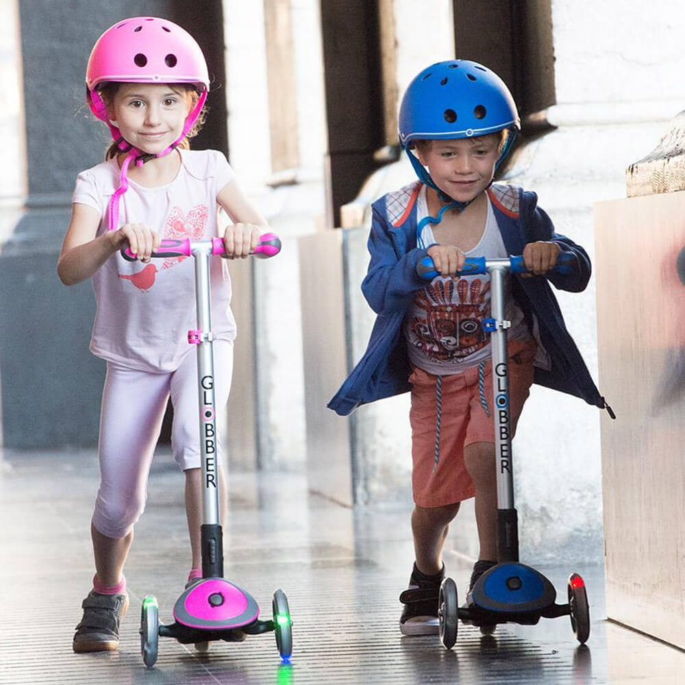 Der teleskopierbare und zusammenklappbare 3-Rad-LED-Scooter von Globber ist für jedes Kind ab 3 Jahren mit einer Körpergröße von sogar mehr als 95 cm und einem maximalen Gewicht von 50 kg geeignet.
