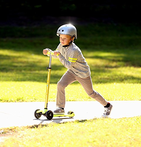 Dreirädriger Scooter mit Body-Tilt-Lenksystem. Höhenverstellbarer Lenker, um dem wachsenden Kind zu folgen und es von 6 bis 12 Jahren zu begleiten. In Deluxe-Version, mit Eloxalfarben, verschleißfest und maximal 70 kg belastbar.