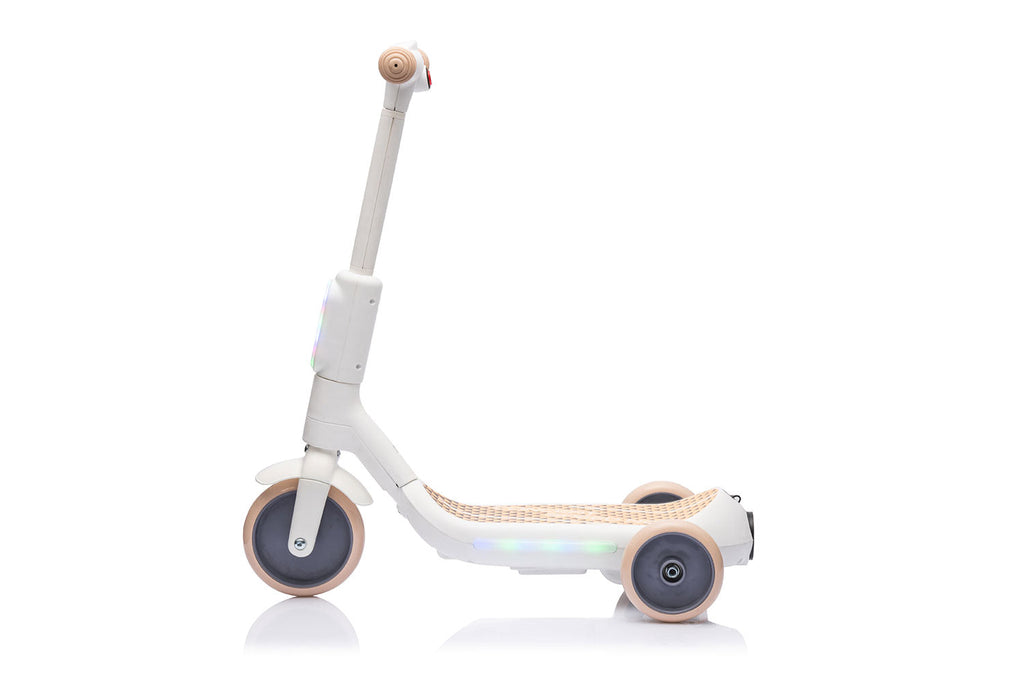 Monopattino Elettrico Deluxe a 3 Ruote 67x32x69 cm Luci LED RGB Casco e Protezioni Incluse Beige
