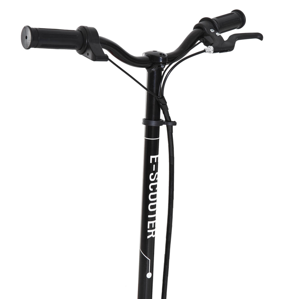 Es hat einen stabilen Rahmen, ein breites Deck, eine Bremse am Lenker und einen Stützständer.