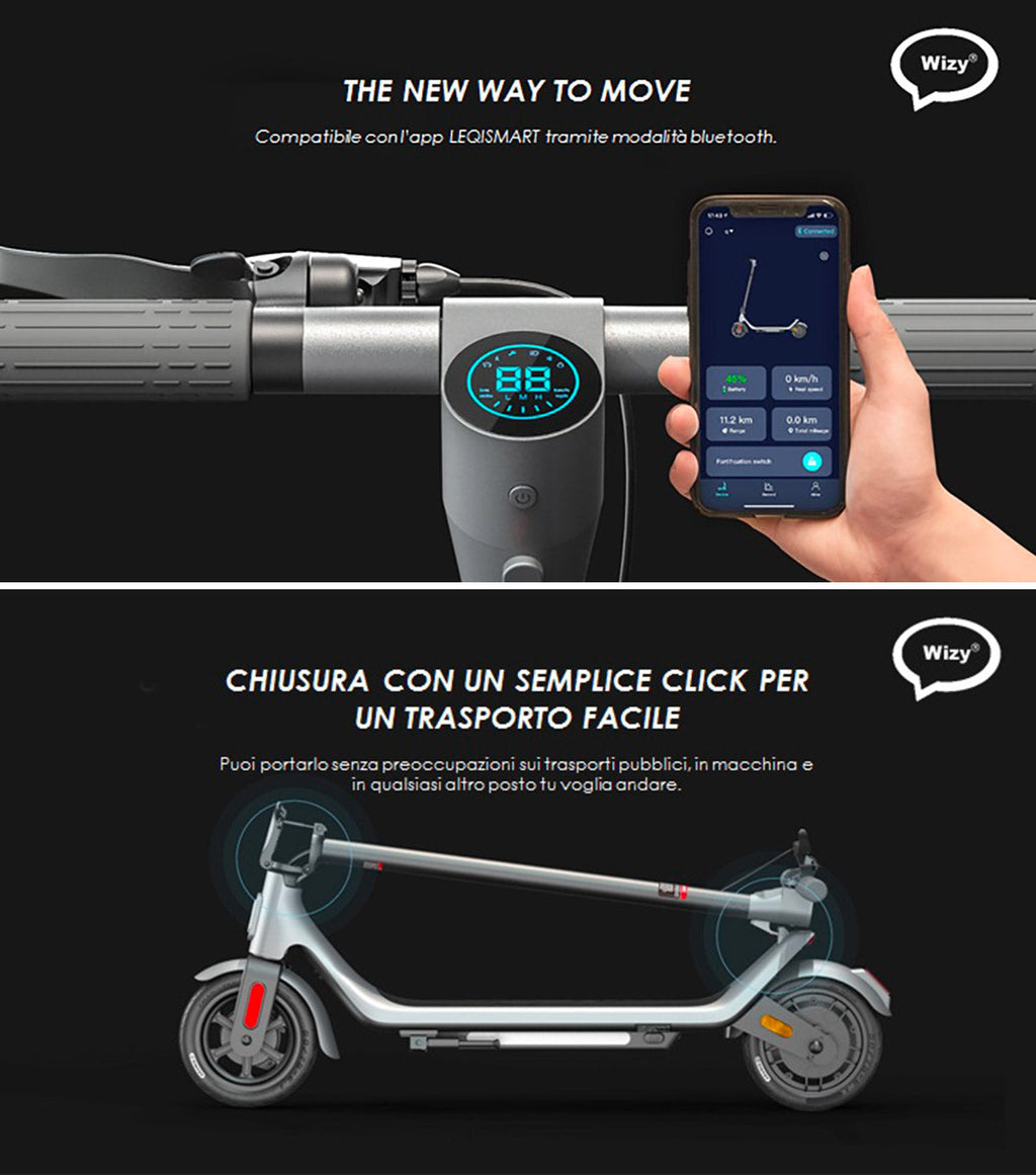 - Pneumatici 10” Brevettati Antiforatura e Massima Aderenza su Pioggia