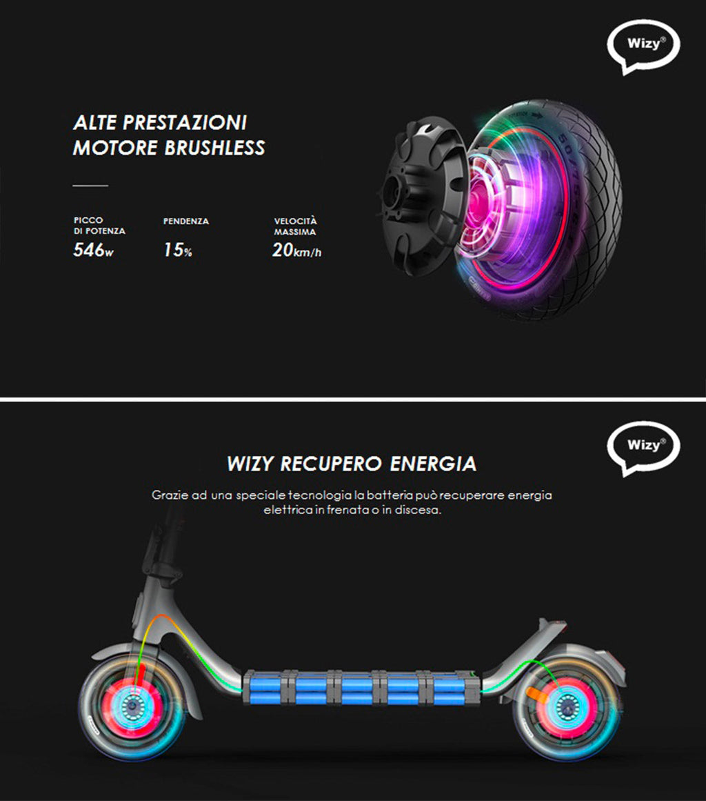 - Motore: Gearless montato posteriormente, Motore Brushless