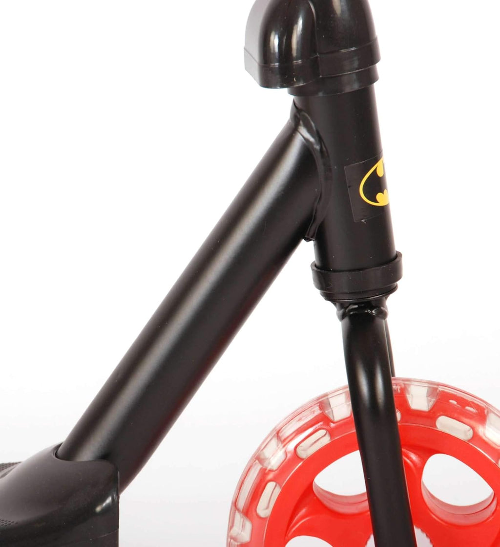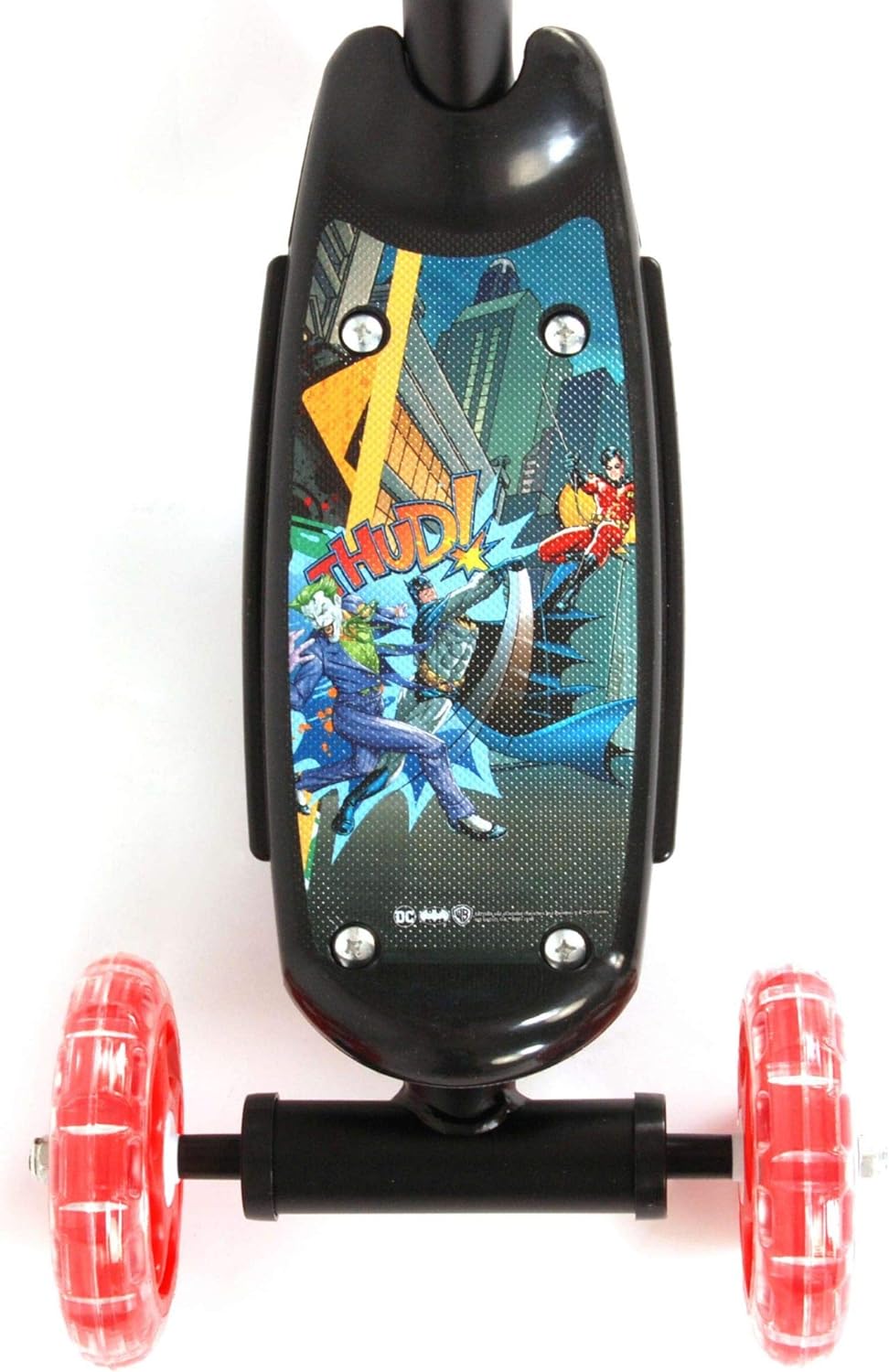 Fantastico monopattino a tre ruote di Batman: una anteriore di 15 cm e due posteriori di 10 cm di diametro realizzate in PU con copertura in EVA e cuscinetti di precisione per dare velocità e fluiidità al movimento. Il manubrio è regolabile in altezza da 58 a 65 cm con due manicotti in gomma per una presa comoda e sicura. Telaio in acciaio resistente agli urti.