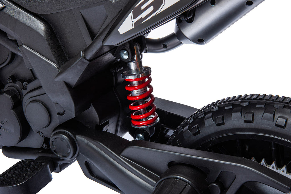 Questa moto elettrica per bambini Aprilia RX-125 Motocross presenta una batteria da 12V e 4Ah per una lunga durata di utilizzo. Le ruote in gomma Eva assicurano un'ottima aderenza su qualsiasi superficie, mentre le luci a Led garantiscono una visibilità ottimale. Le cinture di sicurezza e le sospensioni rendono il viaggio sicuro e confortevole, mentre le dimensioni di 108x49x75 cm lo rendono adatto anche ai più piccoli. Con un ammortizzatore integrato, questo veicolo è la scelta perfetta per divertirsi in totale sicurezza.