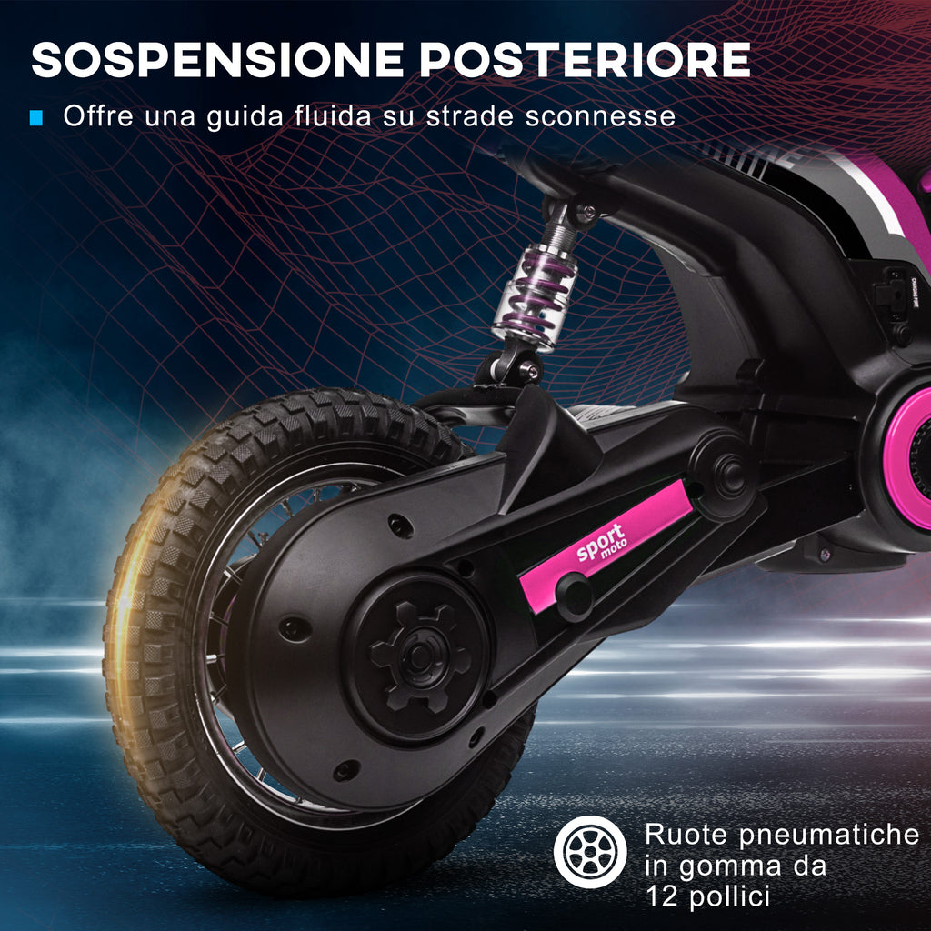 Moto Elettrica per Bambini con Acceleratore Manuale 2 Velocità 8-16km/h Rosa