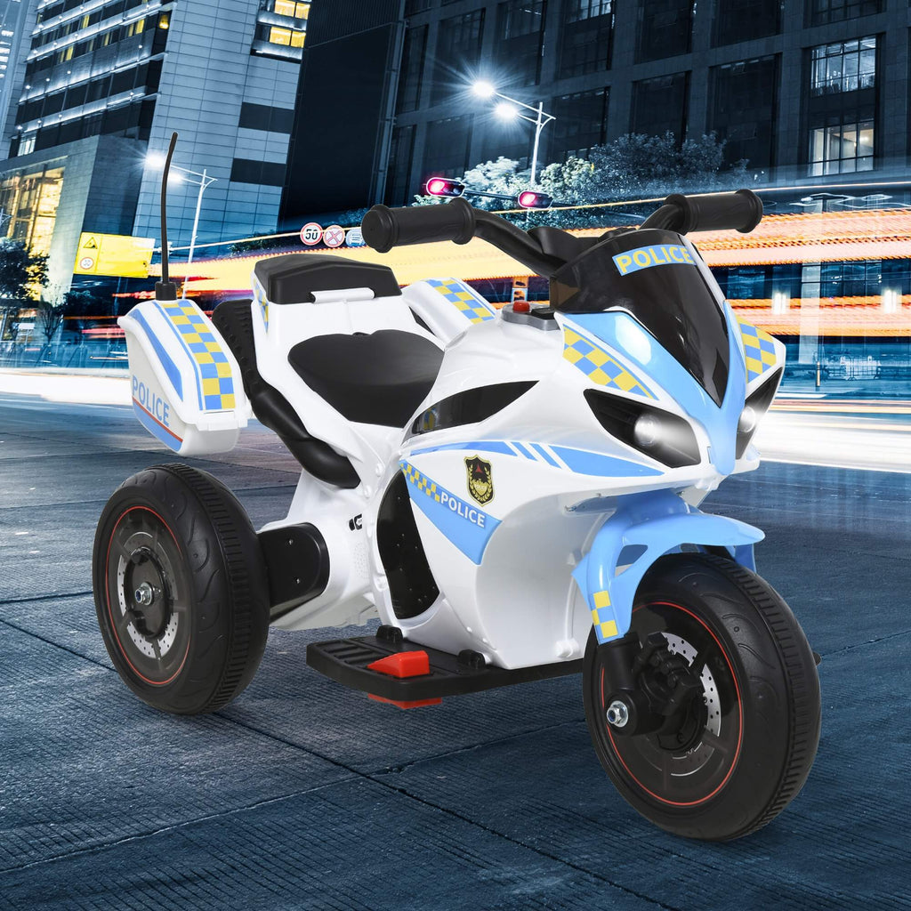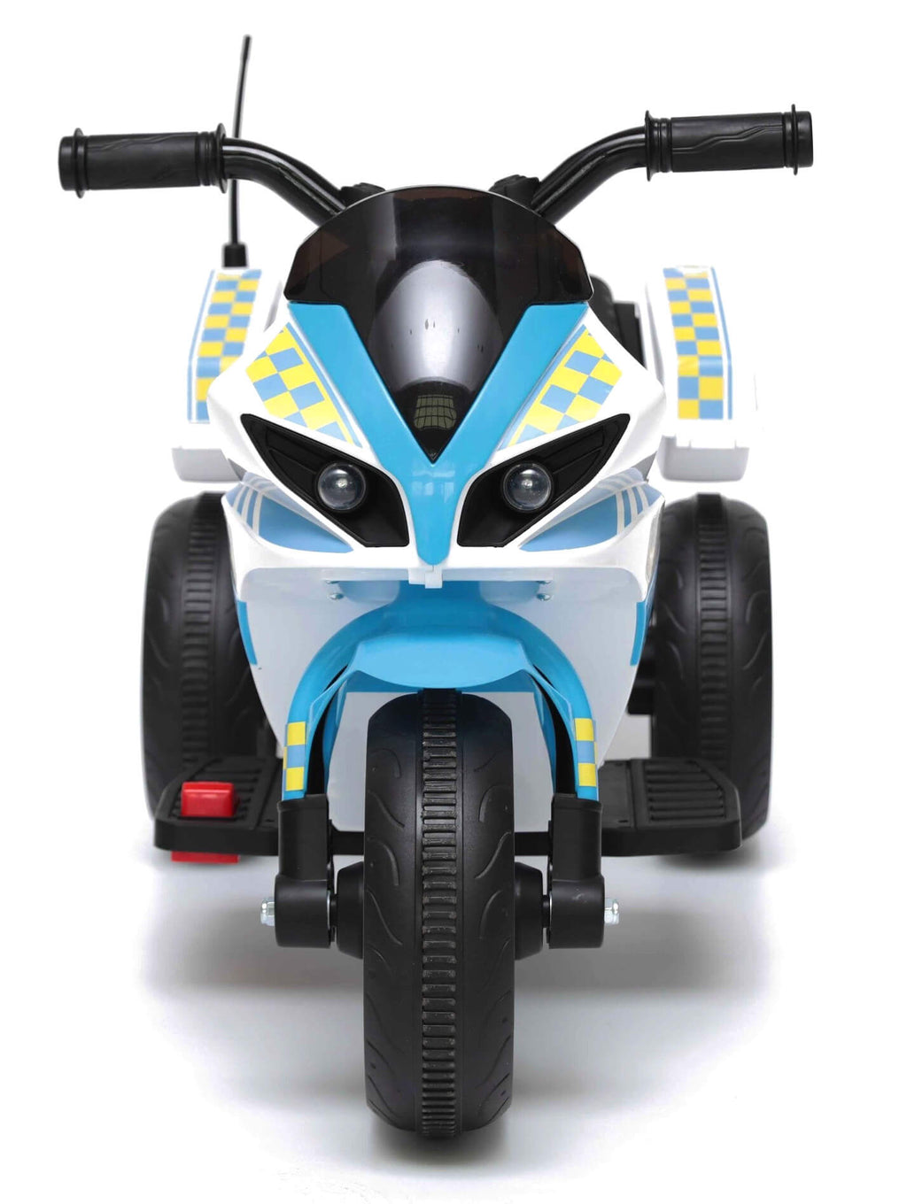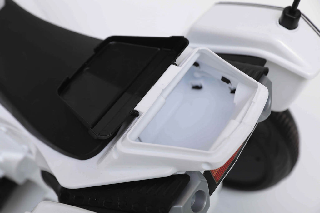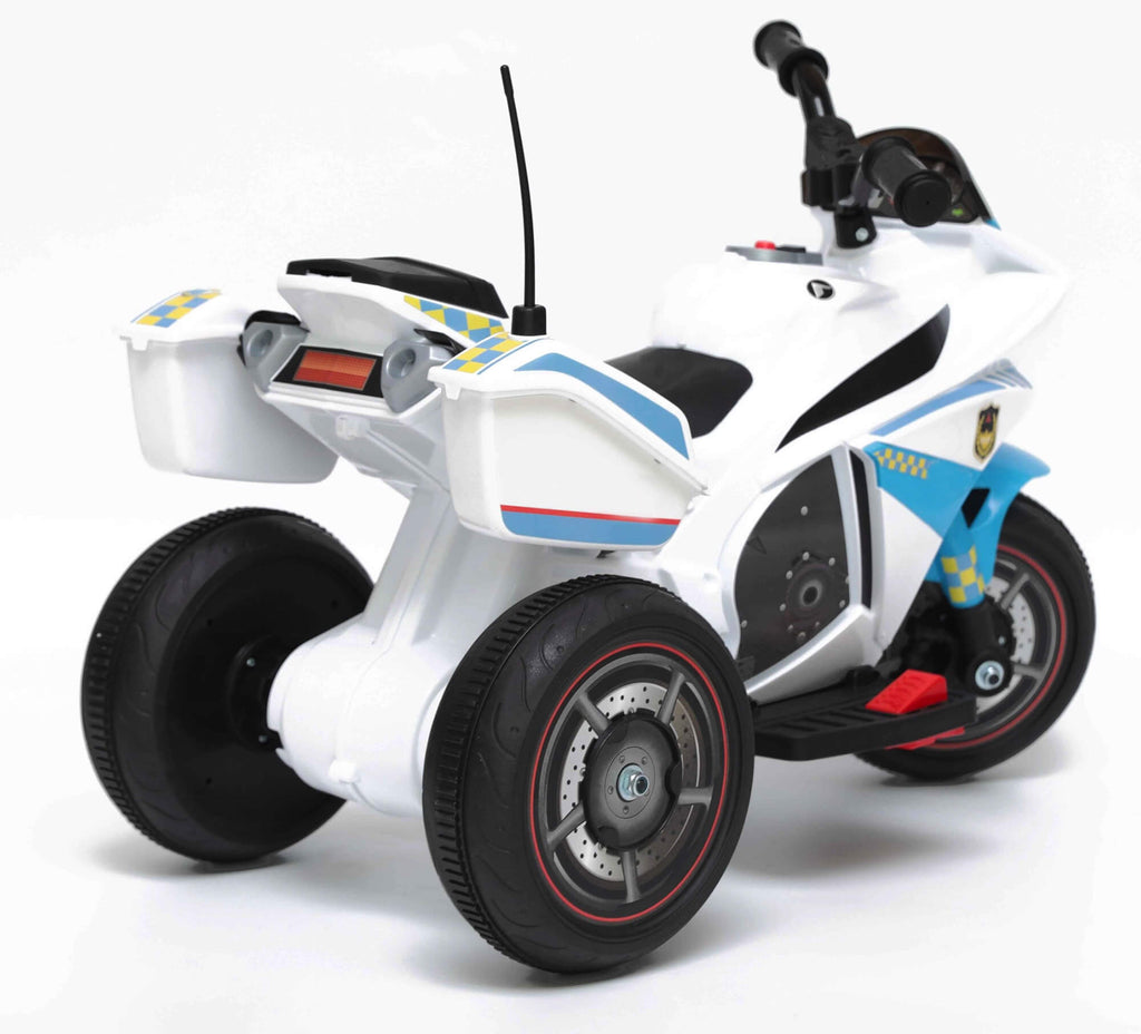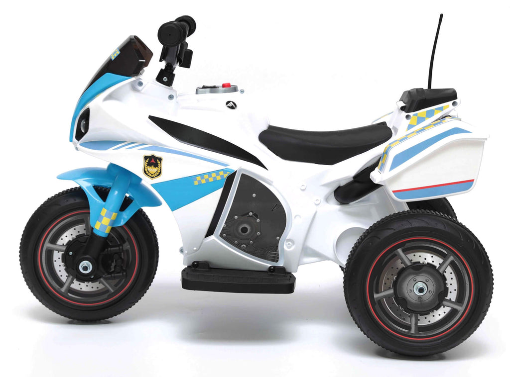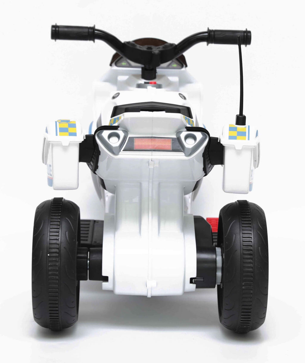 Schönes Mini-Elektromotorrad für Kinder mit 3 Rädern Polizeimodell. Sehr schönes Design mit Licht und Musik, es wird Ihre Kinder in Erstaunen versetzen und ihnen das Gefühl geben, wie die Erwachsenen zu fahren. Das Mini Moto hat eine Höchstgeschwindigkeit von 3 KM-H mit Gaspedal mit einer Geschwindigkeit und Vorwärts- und Rückwärtswahlschalter, es gibt eine Taste für die LED-Licht- und Soundeffekte und einen MP3-Player, ideal, um Ihre Kinder die Erfahrung eines Führers erleben zu lassen sicher und macht Spaß im Innen- und Außenbereich, im Garten oder auf der Terrasse.