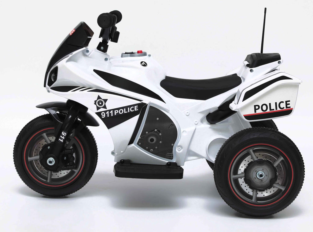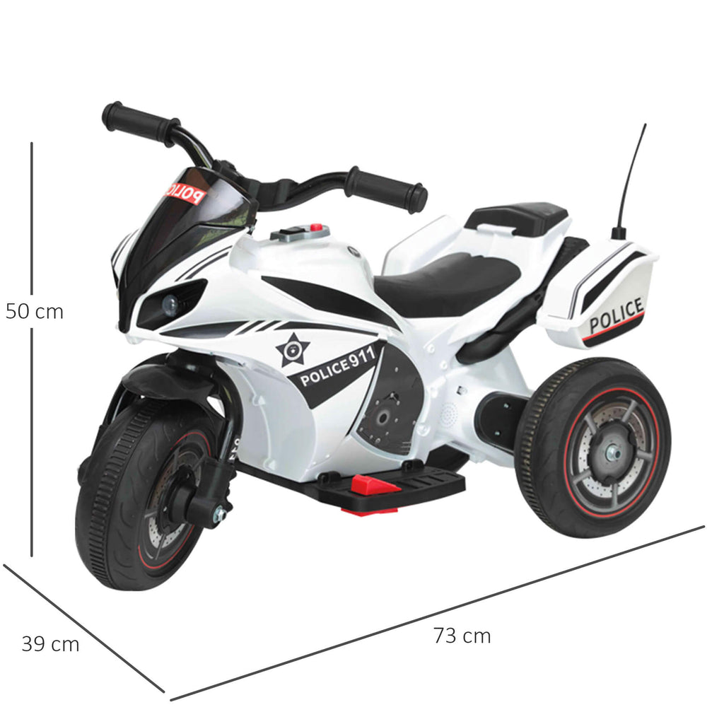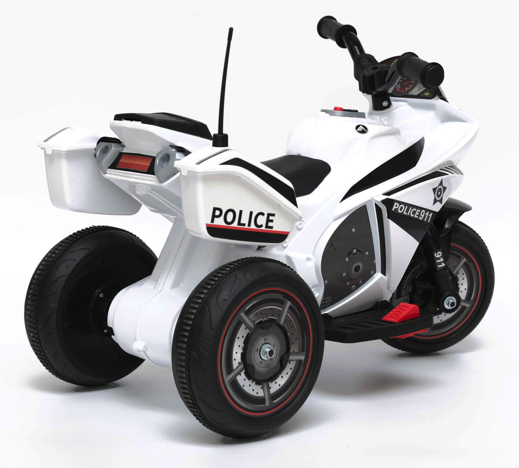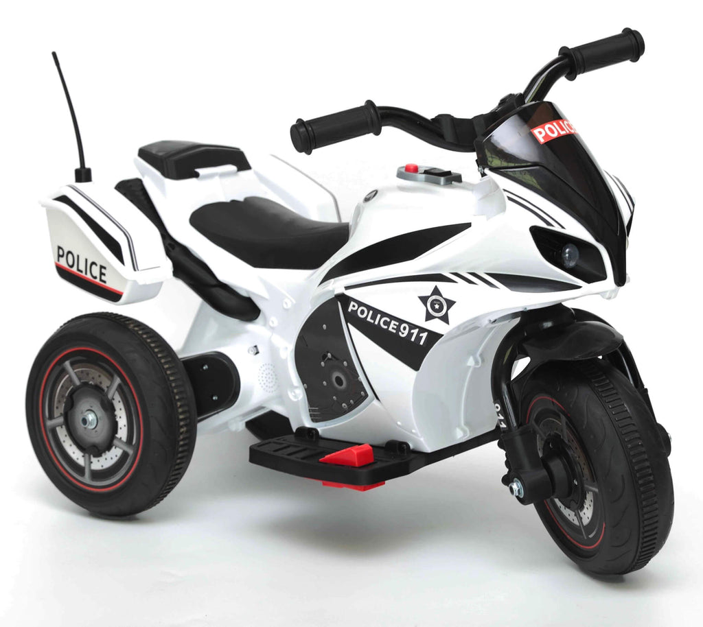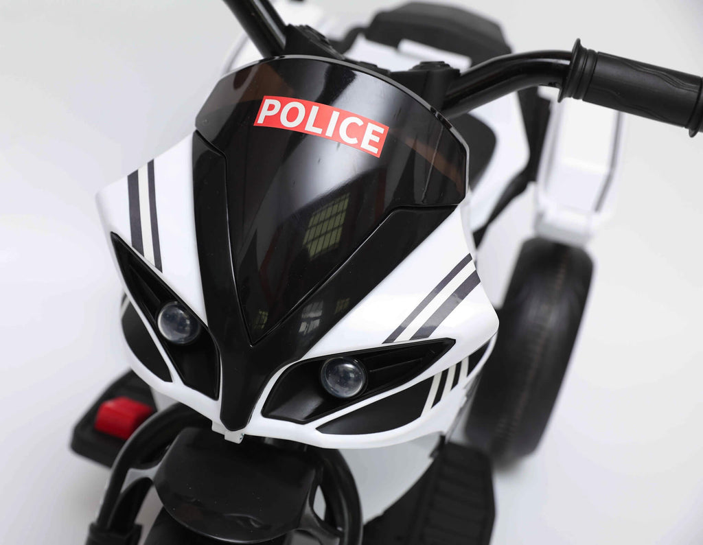 Schönes Mini-Elektromotorrad für Kinder mit 3 Rädern Polizeimodell. Sehr schönes Design mit Licht und Musik, es wird Ihre Kinder in Erstaunen versetzen und ihnen das Gefühl geben, wie die Erwachsenen zu fahren. Das Mini Moto hat eine Höchstgeschwindigkeit von 3 KM-H mit Gaspedal mit einer Geschwindigkeit und Vorwärts- und Rückwärtswahlschalter, es gibt eine Taste für die LED-Licht- und Soundeffekte und einen MP3-Player, ideal, um Ihre Kinder die Erfahrung eines Führers erleben zu lassen sicher und macht Spaß im Innen- und Außenbereich, im Garten oder auf der Terrasse.