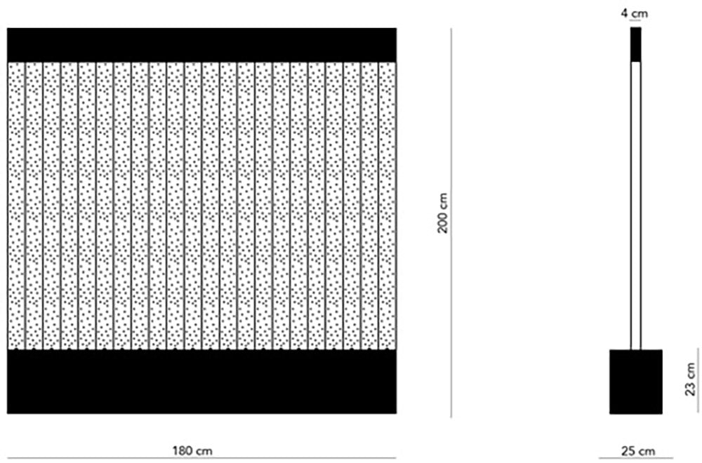 Il pannello è costruito in plexiglass trasparente nel quale scorrono una moltitudine di bolle dal basso verso l’alto.
