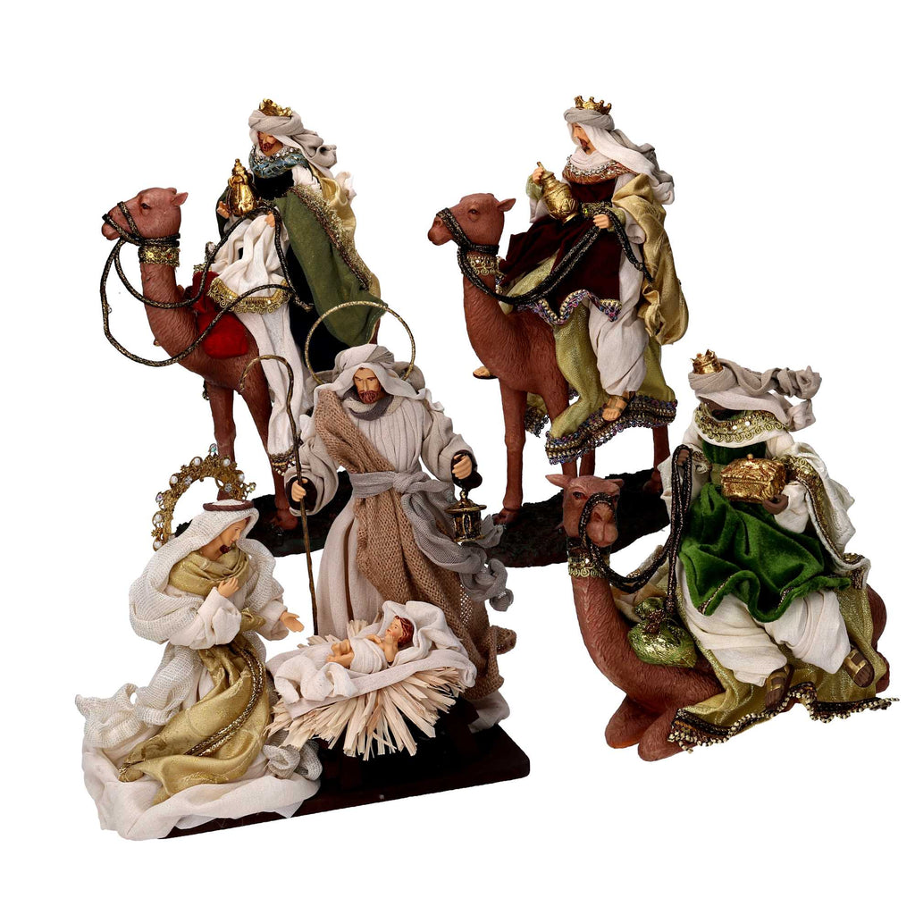Natività tessuto bianco e oro con re magi cm xh25,4