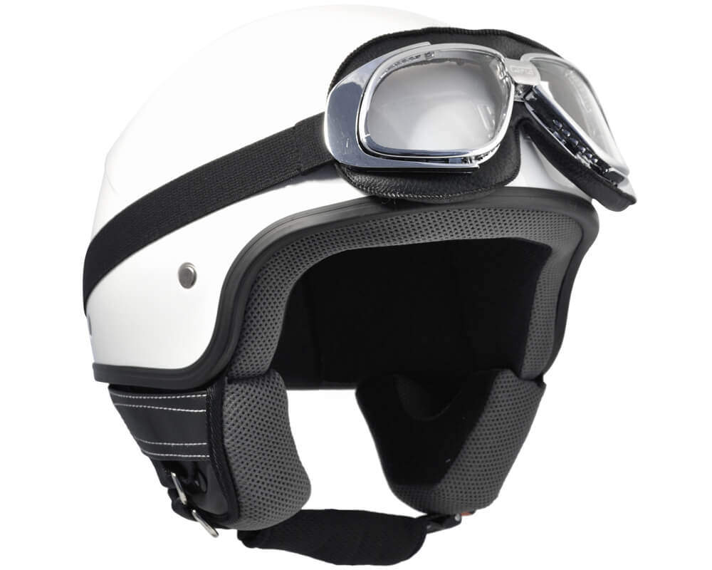 Motorradbrille aus Kunstleder mit silbernem Rahmen, ausgestattet mit CGM Confort 702V transparenten Gläsern