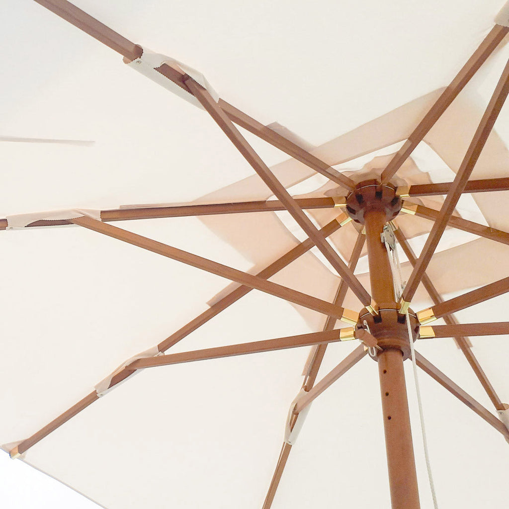 Die Struktur ist robust, aus feuchtigkeitsbeständigem Kotò-Holz gefertigt, das Öffnen des quadratischen Regenschirms ist einfach: Ziehen Sie einfach die Schnur nach unten und stoppen Sie den Regenschirm mit dem Stoppstift.