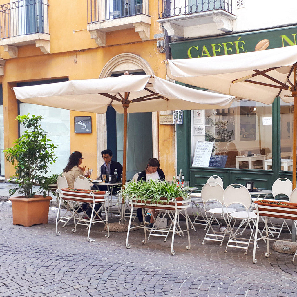 Mittelmast-Außenschirme sind wirklich vielseitig: Sie können sowohl auf kleinen Terrassen als auch auf großen Plätzen aufgestellt werden. Dank der zentralen Struktur müssen Sie über die Leinwand hinaus keinen zusätzlichen Platz einkalkulieren.