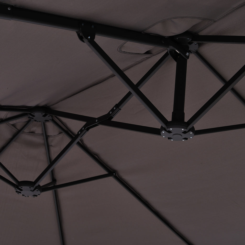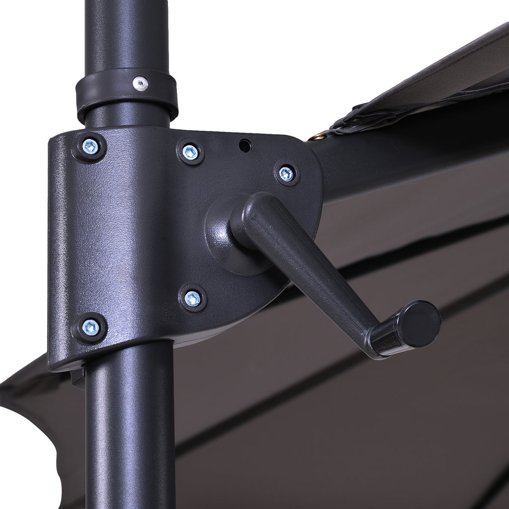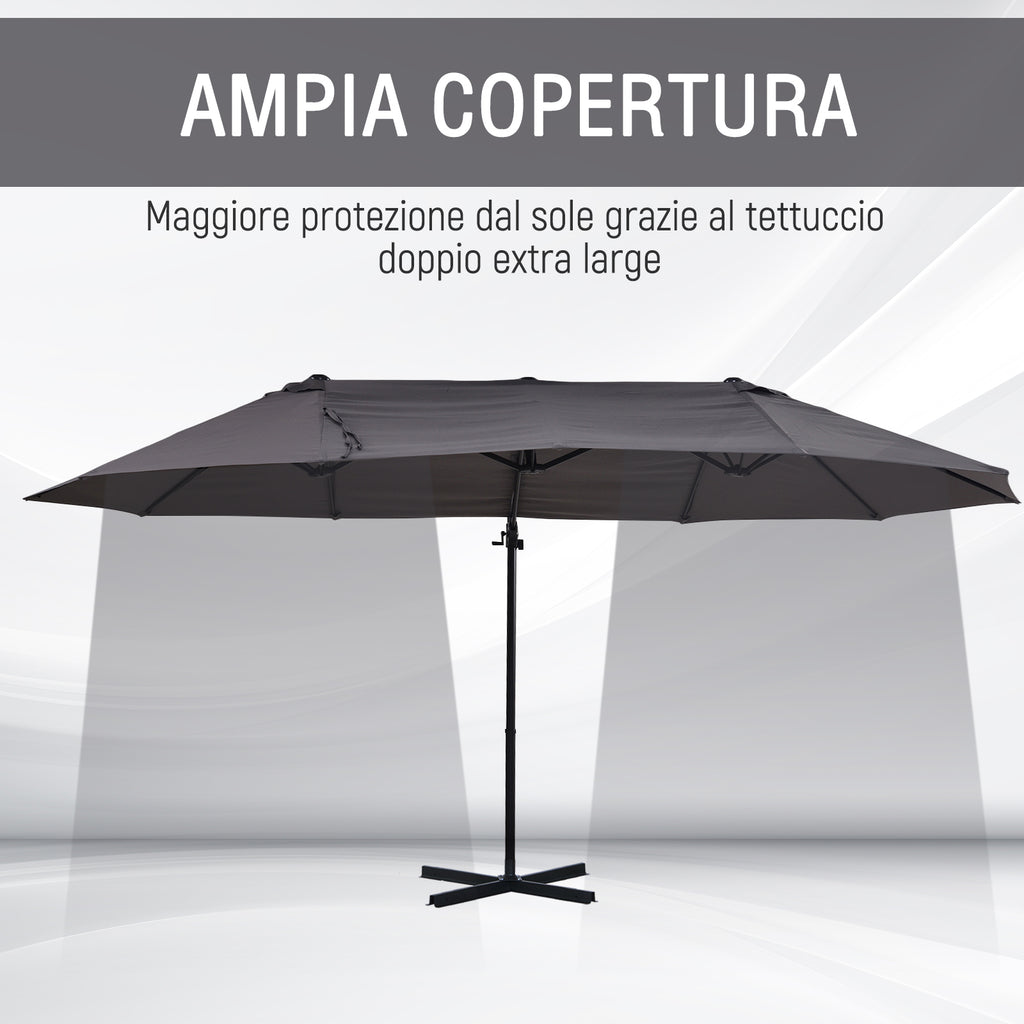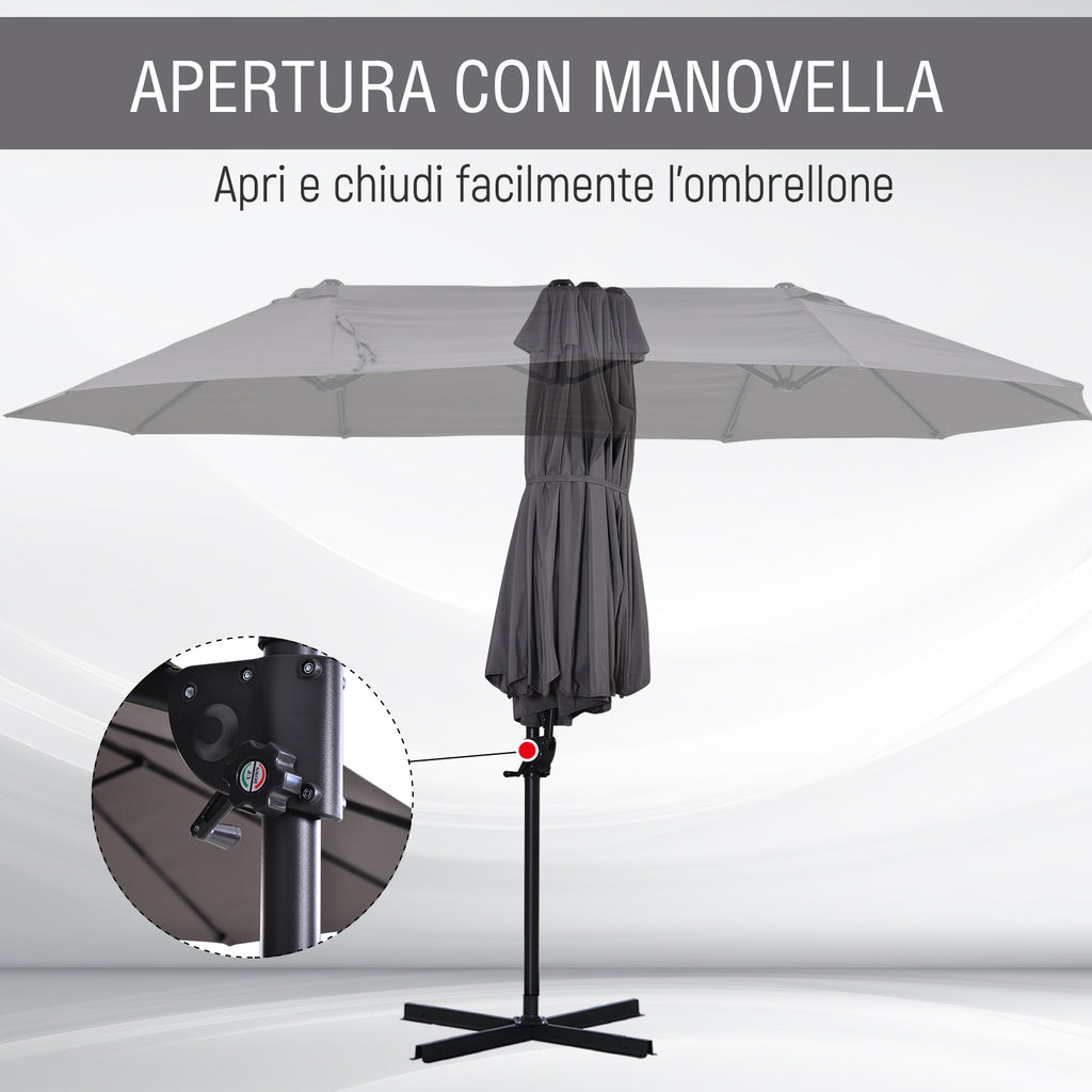 Dieser Doppelschirm ist die perfekte Wahl, um einen großen Bereich vor der Sonne zu schützen, wie z. B. die Tische eines Cafés, den Innenhof oder den Park. Die Überdachung besteht aus UV-blockierendem Polyester, während der Rahmen aus rostbeständigem Stahl besteht und von 12 Rippen für maximale Stabilität getragen wird. Dank der Kurbel können Sie den Sonnenschirm ganz einfach nach Ihren Bedürfnissen öffnen und schließen. Zusammen mit muss das Leben im Freien gelebt werden!