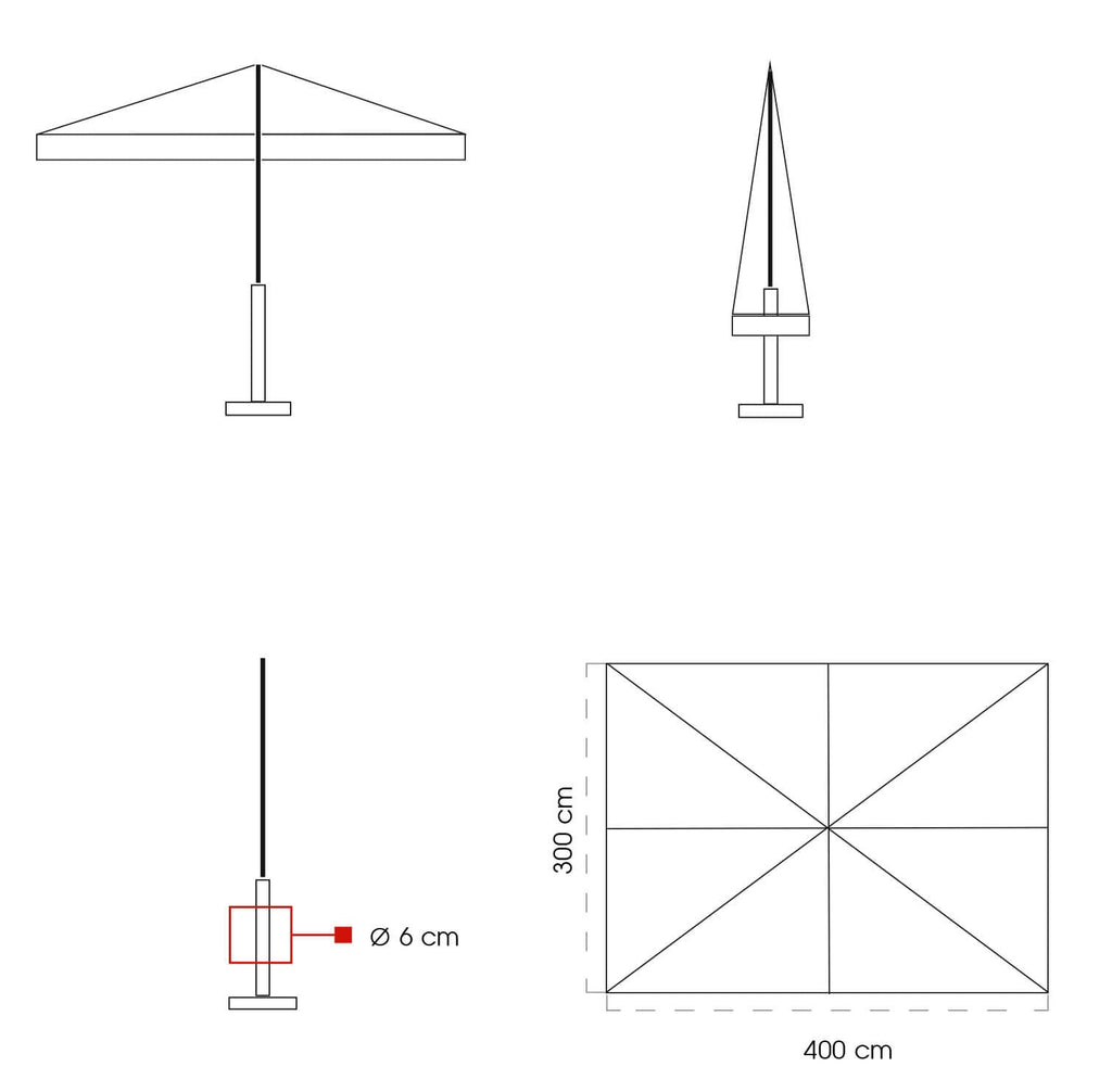 - Sonnenschirm Sydney mit zentralem Holzmast und rechteckigem Tuch 3x4 Meter ohne Anhänger