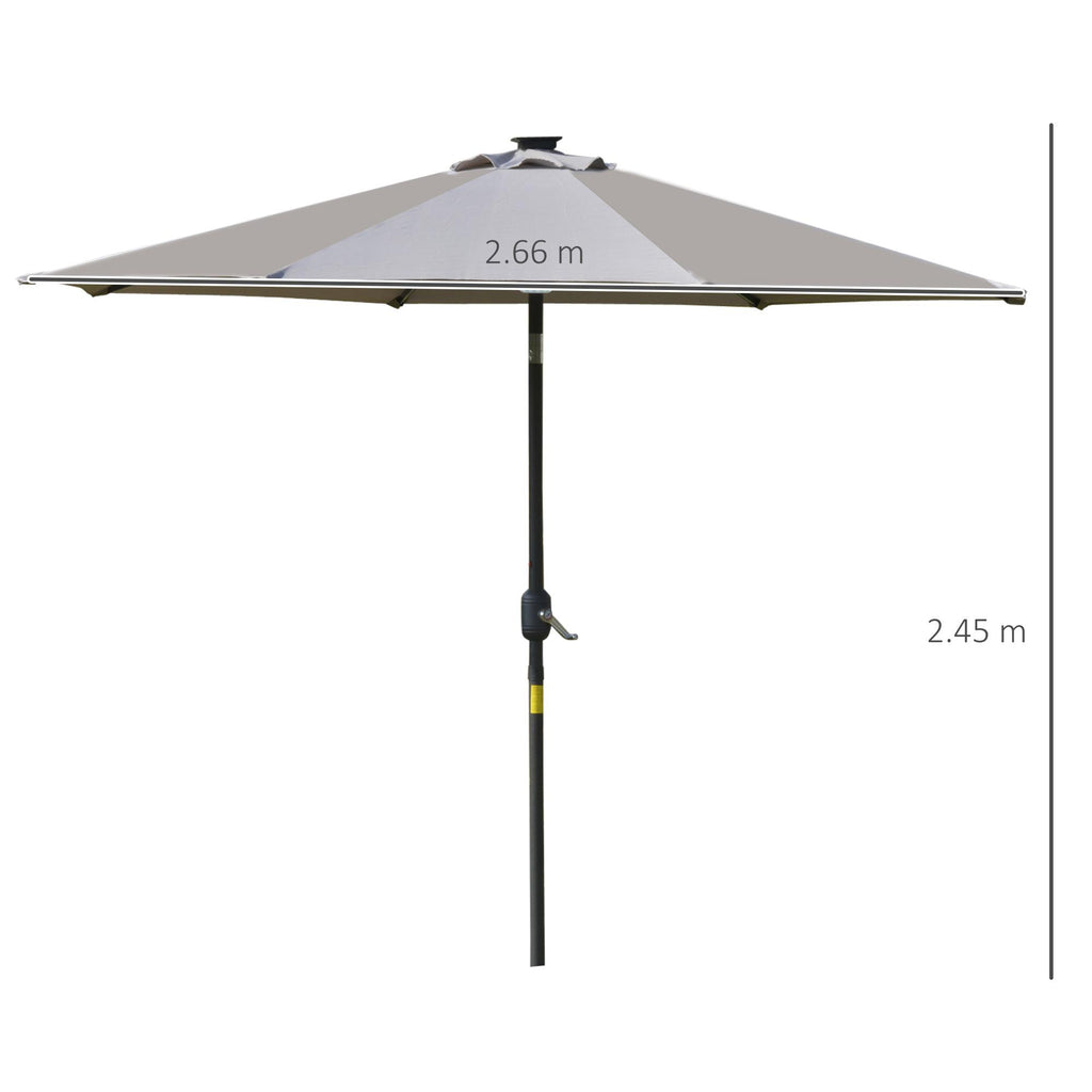 Gartenschirm mit LED-Leuchten und Solarpanel Ø2,66m aus Metall und grauem Polyester