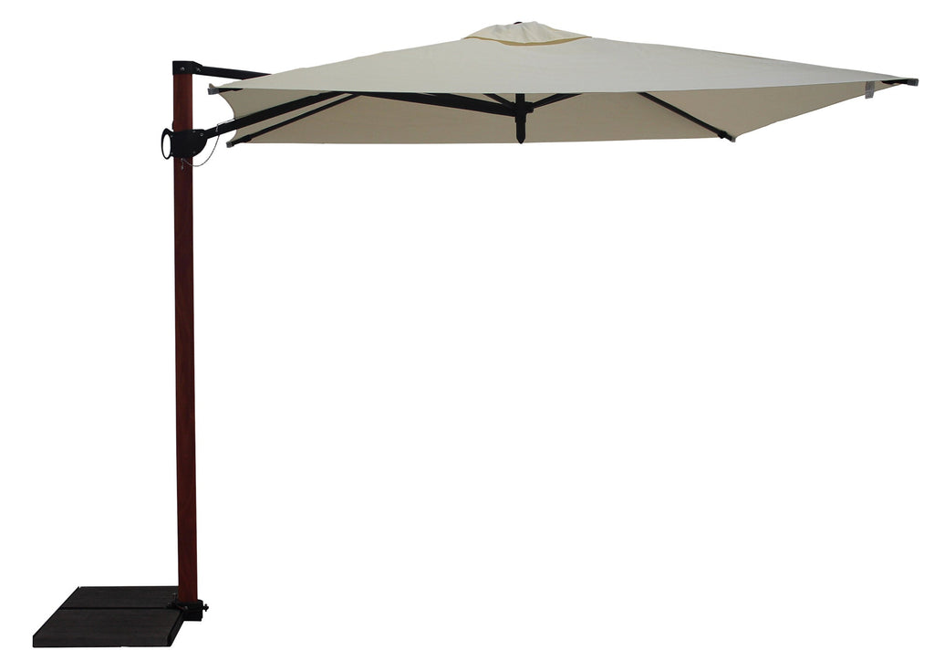 Ombrellone da Giardino Decentrato 2,5x2,5m Palo in Alluminio Effetto Legno Tessuto Poliestere Trend Wood Ecru