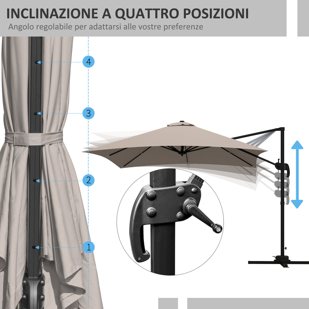- Girevole a 360° con pedale per ruotare l'ombrellone nella direzione del sole