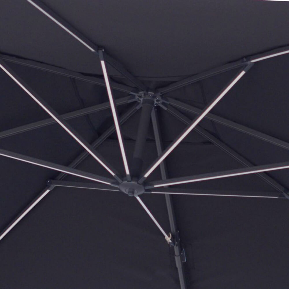 Freischwinger-Gartenschirm mit quadratischer Seitenstange 3 x 3 m aus Aluminium Adami Florida Black mit Led