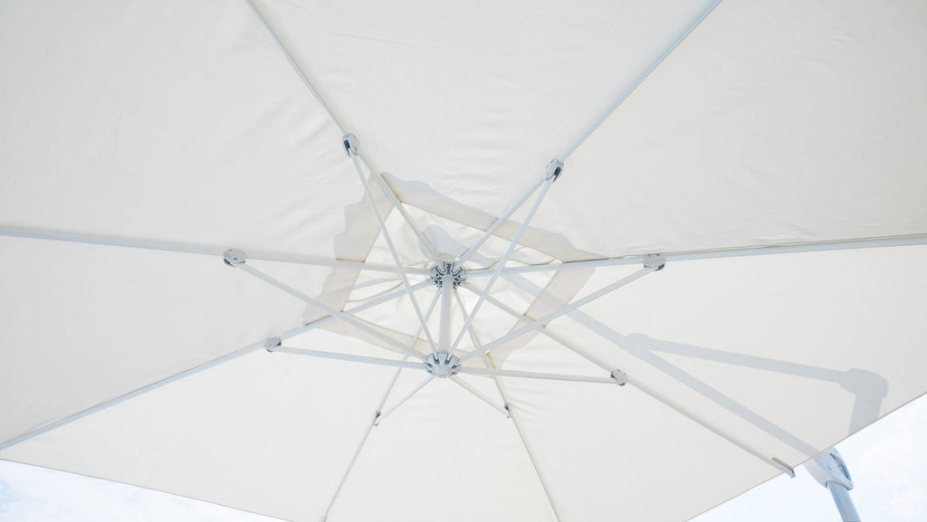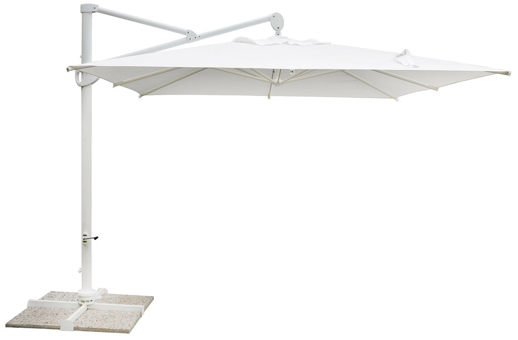 Dezentraler Gartenschirm 3x3m aus Aluminium und weißem Polyester