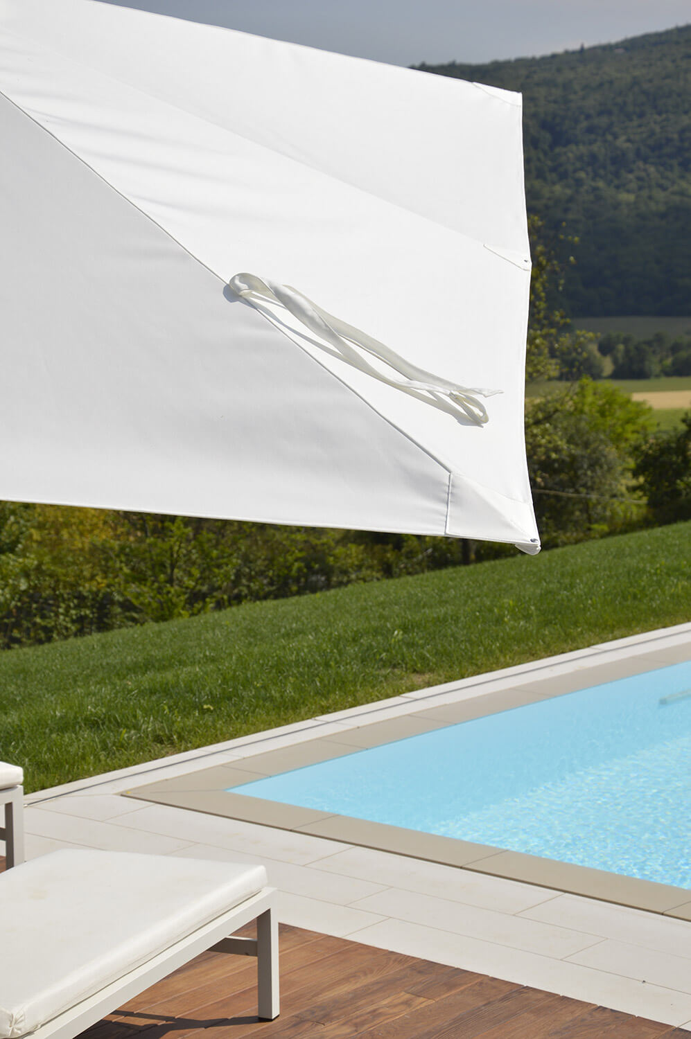 Dezentraler Gartenschirm 3x3m aus Aluminium mit Mosini Jazz White Polyestergewebe