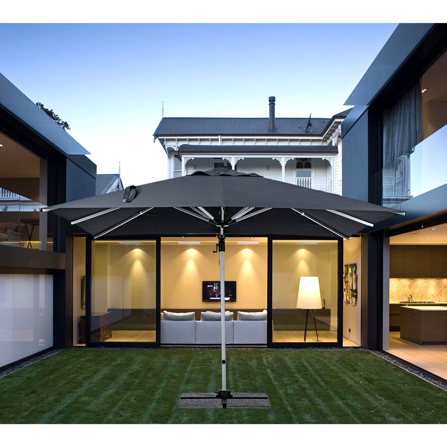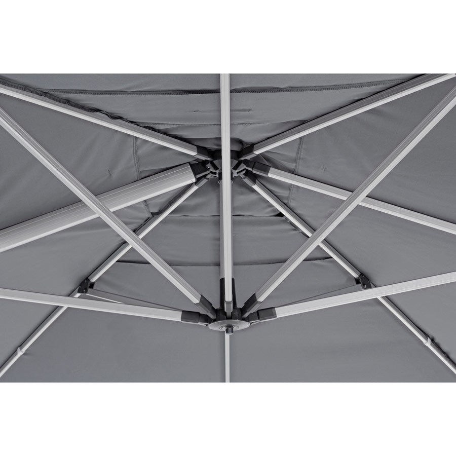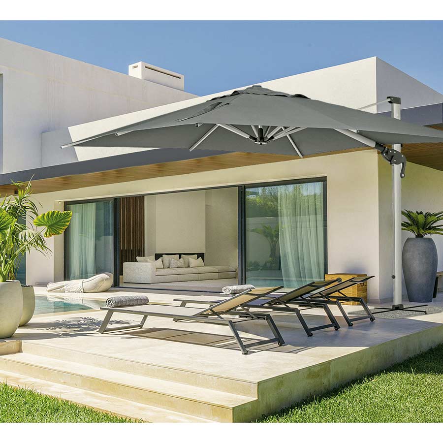 Copertura a 360° grazie al braccio laterale girevole di ombrellone Roma 3x3 palo 93x57 Grigio