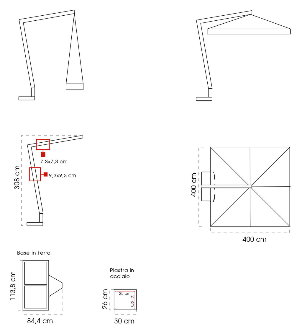 Der Sonnenschirm QUADRATO aus der Linie SAN FRANCISCO entspricht perfekt den Beschattungsbedürfnissen jedes Open-Air-Kontexts. Hochwertige Materialien und modernste Behandlungen machen den Sonnenschirm extrem widerstandsfähig gegen die aggressive Einwirkung von Witterungseinflüssen, insbesondere gegen das Ausbleichen durch UV-Strahlen und Regen.