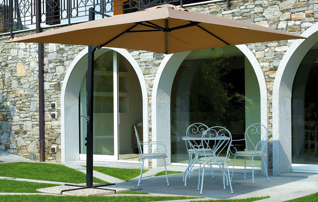 Dezentraler rechteckiger Aluminium-Gartenschirm 2,40 x 3,30 m mit Vorghini-Kurbel Poli Anthrazit und Sand
