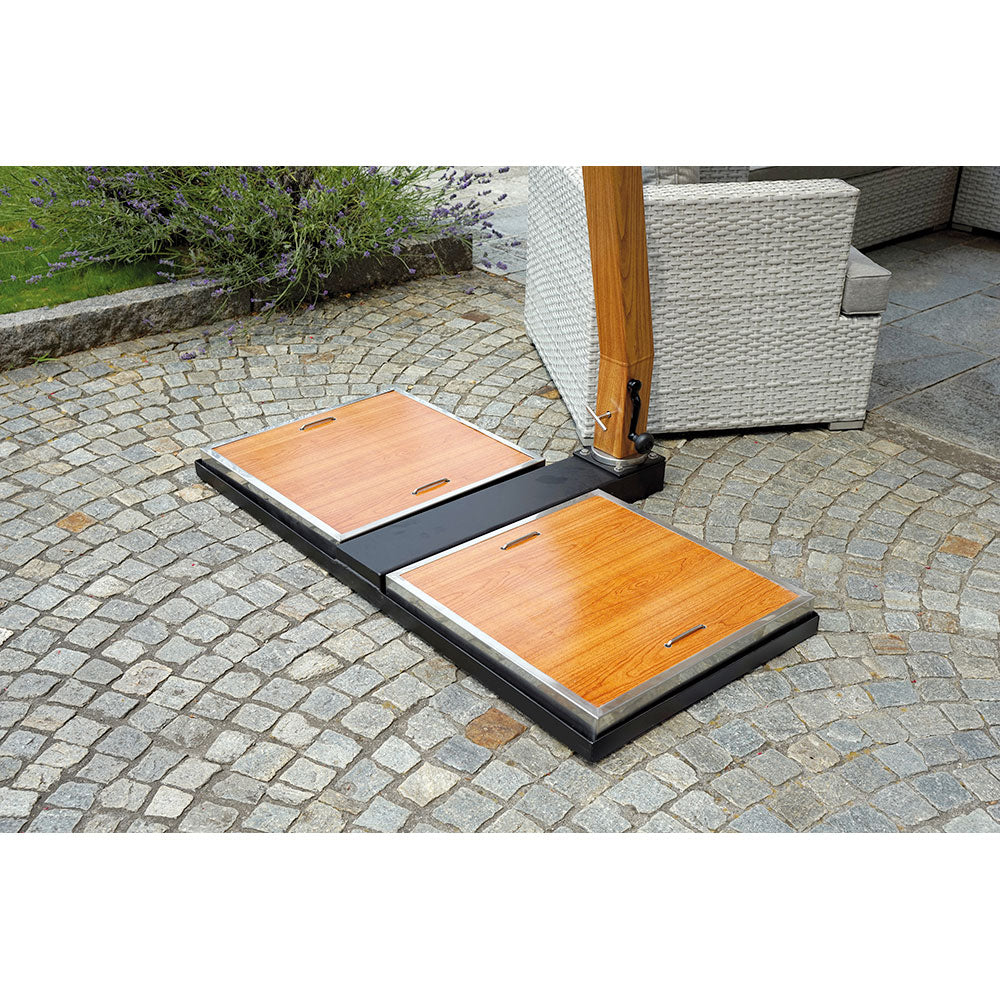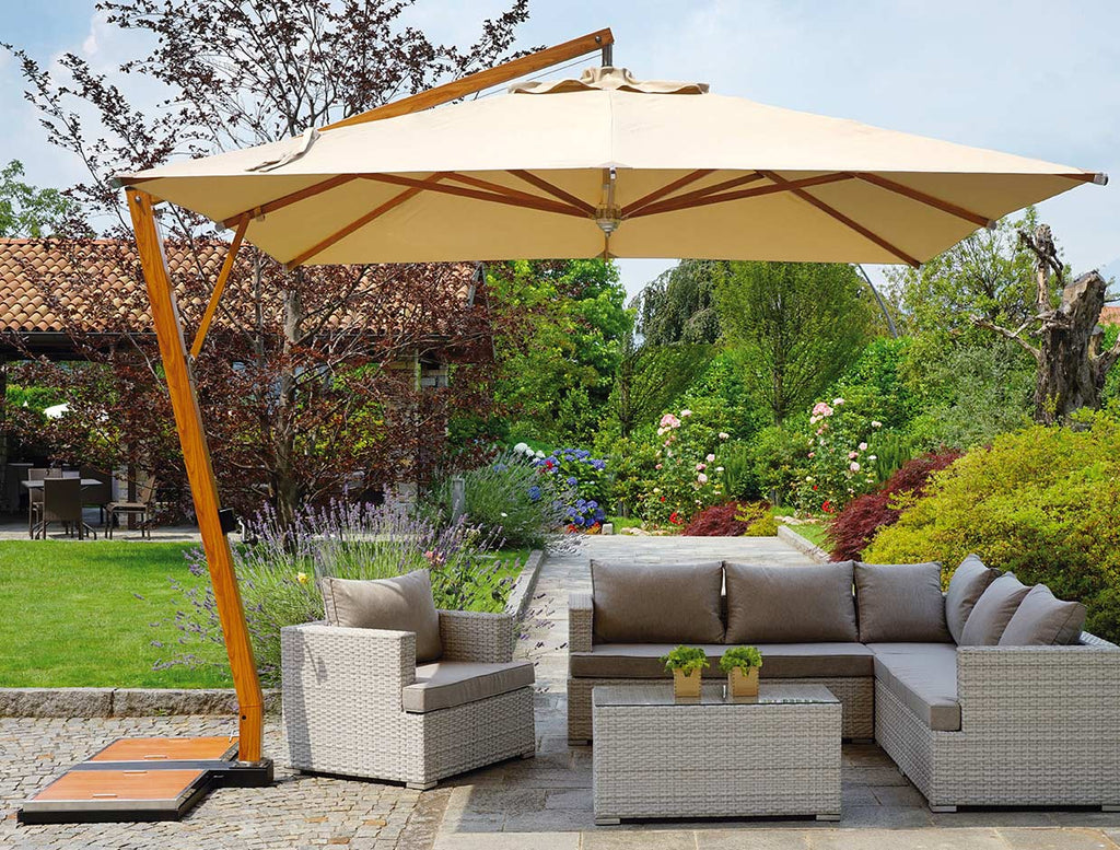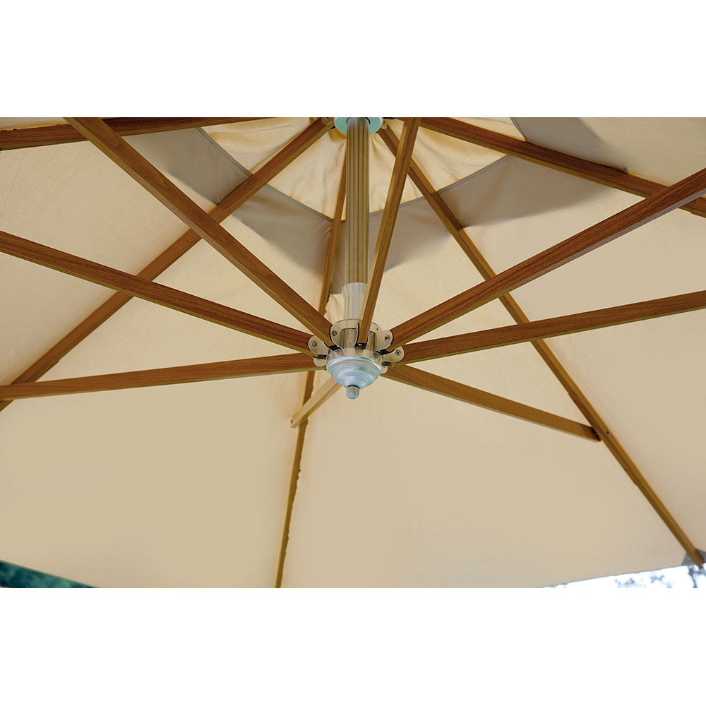 Dezentraler Gartenschirm aus Aluminium 3,5 x 3,5 m mit Vorghini Crank Contract Wood und Sand