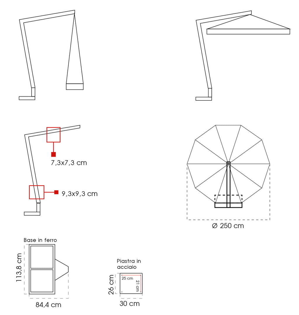 - Sockel aus pulverbeschichtetem, verzinktem Eisen mit Aufnahme für 50 x 50 cm große Fliesen ( Fliesen nicht im Lieferumfang enthalten )