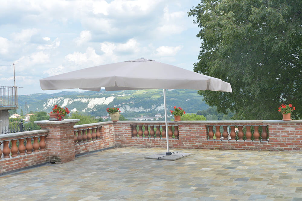 Dezentraler quadratischer Freischwinger-Gartenschirm mit Kurbel zum Öffnen und Schließen 2 x 3 m Adami Michigan Weiß ohne Fuß