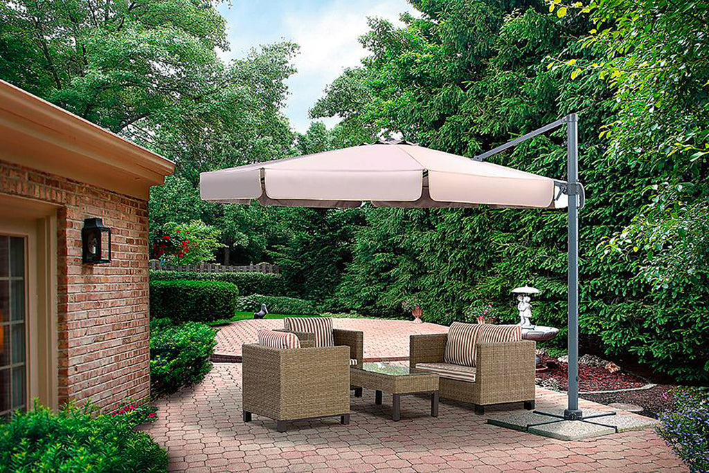 Dezentraler quadratischer Freischwinger-Gartenschirm mit Kurbel zum Öffnen und Schließen 3 x 3 m Adami Michigan Sand ohne Standfuß