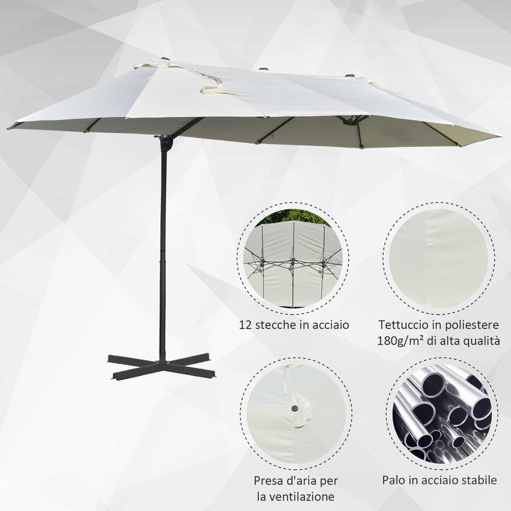 Doppelter Gartenschirm 440 x 270 x 250 cm aus Stahl und cremefarbenem Polyester