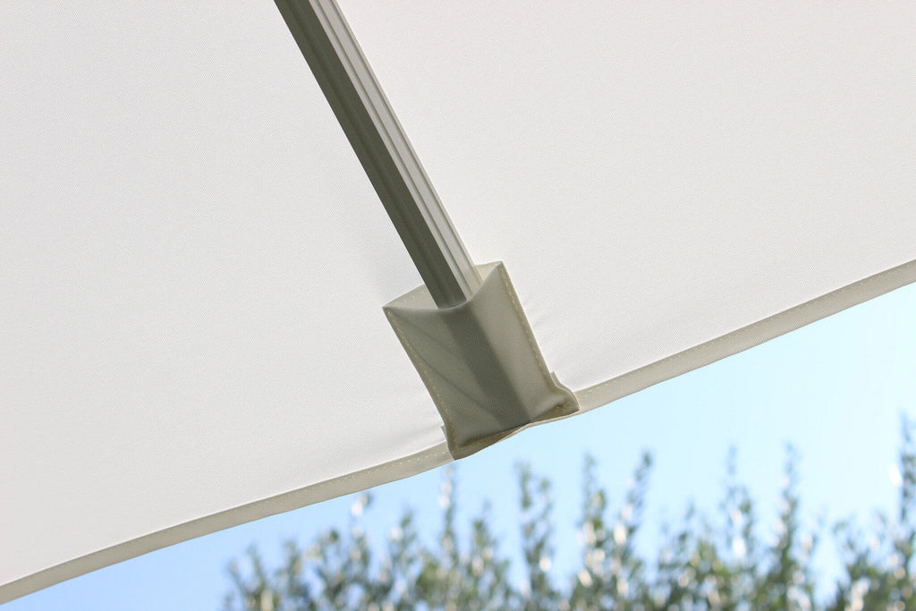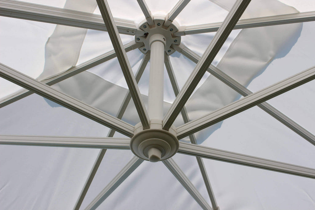 Archimedes Doppel-Gartenschirm 3 x 3 m aus weißem Aluminium mit weißem Tuch