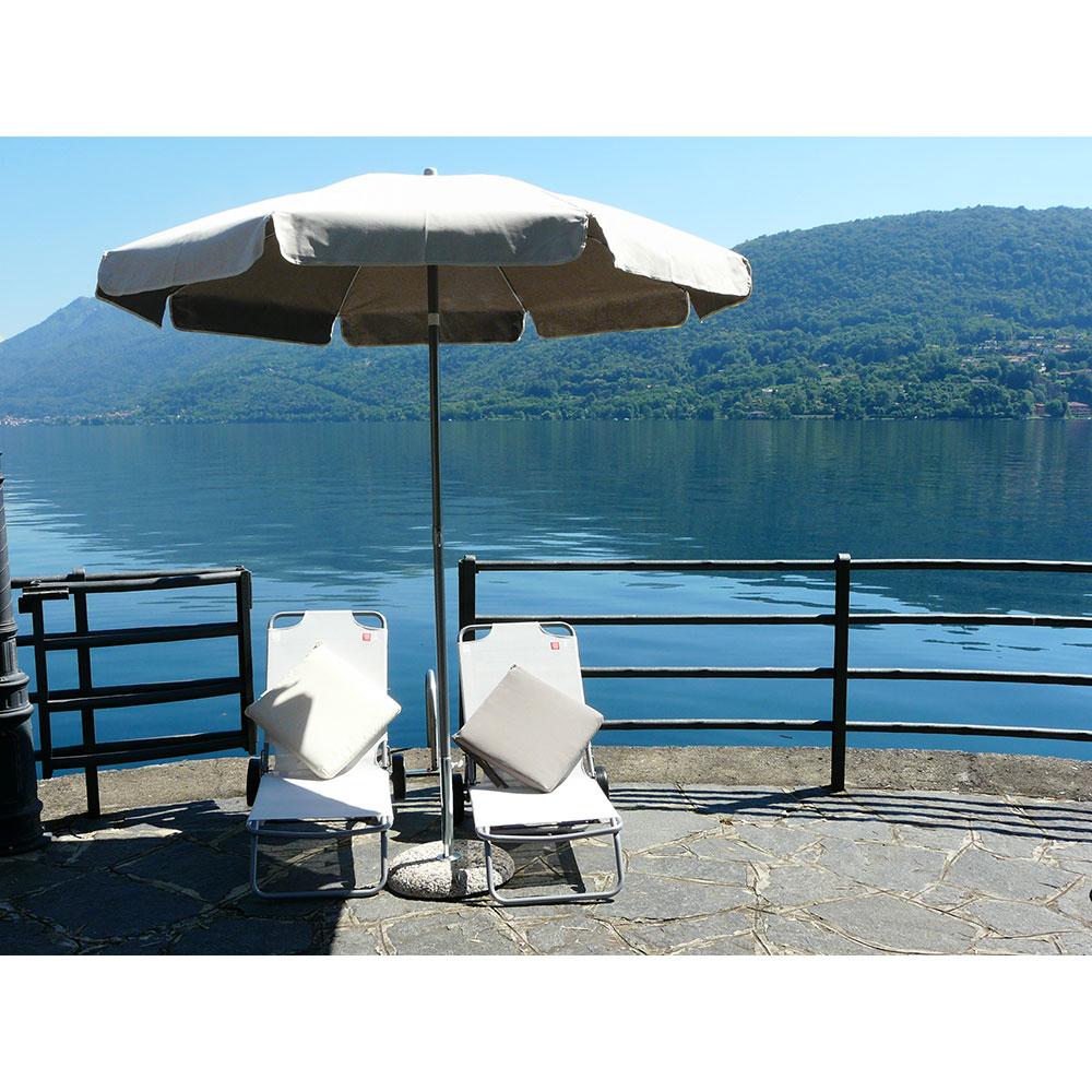 Duplex Venedig . Regenschirm mit Duplex-Baumwollgewebe, Struktur mit 33/33 mm aluminiumgrauem Stahlmast mit Neigung. Dieser Regenschirm ist eine der klassischsten und zeitlosesten robusten Konstruktionen, die sich für viele Anwendungen eignet, Garten , Balkon , Camping , Strand . Die Baumwolle der Leinwand ist dick, gut deckend, im Sommer kühl mit leuchtenden Farben. Empfohlenes Mindestgrundgewicht (nicht im Lieferumfang enthalten) 15/20 kg bei normalen Windverhältnissen.