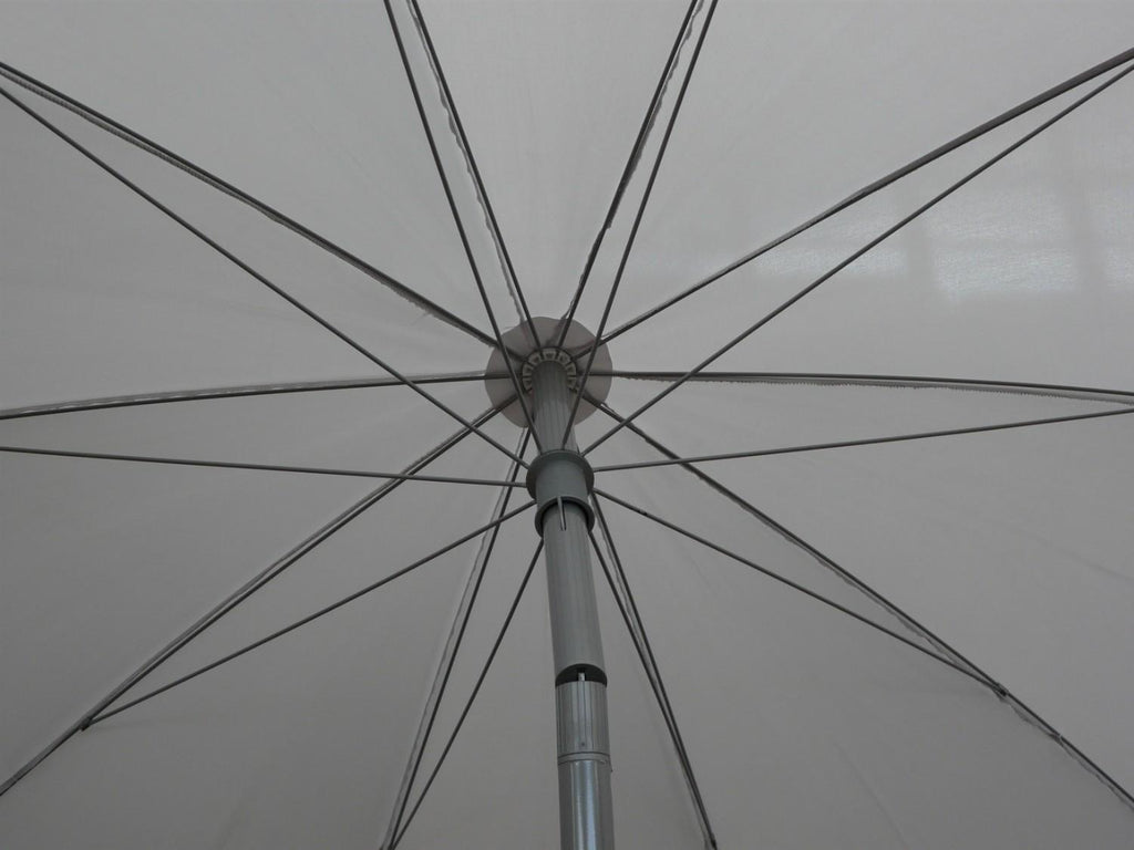 Sonnenschirm aus Polyester mit Mittelstange , leicht und reißfest, Gestell aus grau lackiertem Stahl 33/33 mm mit Neigung, Struktur mit 10 Rippen.