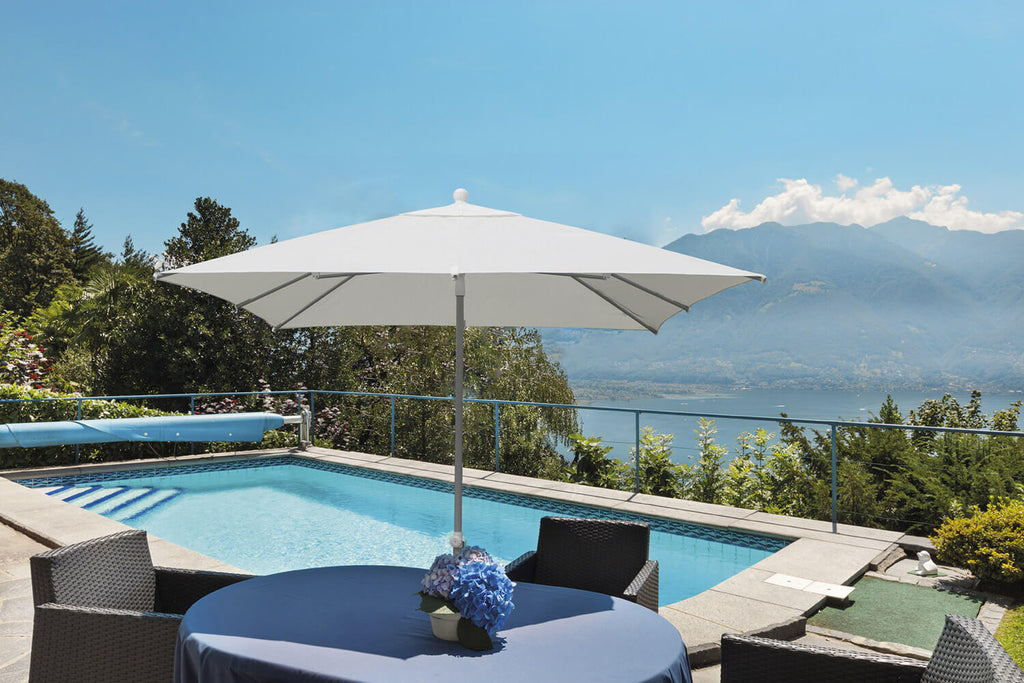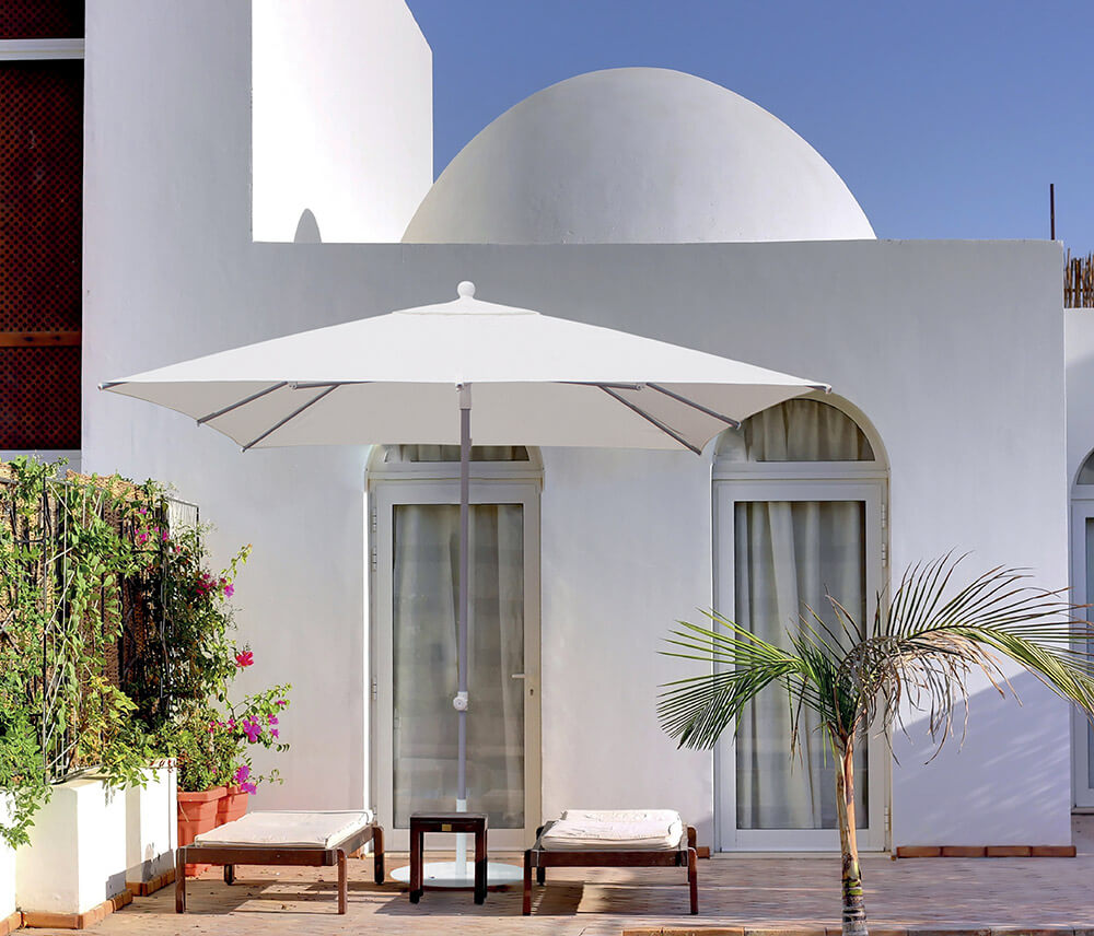 Kraus Quattro Sonnenschirm aus weißem Aluminium, 2,5 x 2,5 m