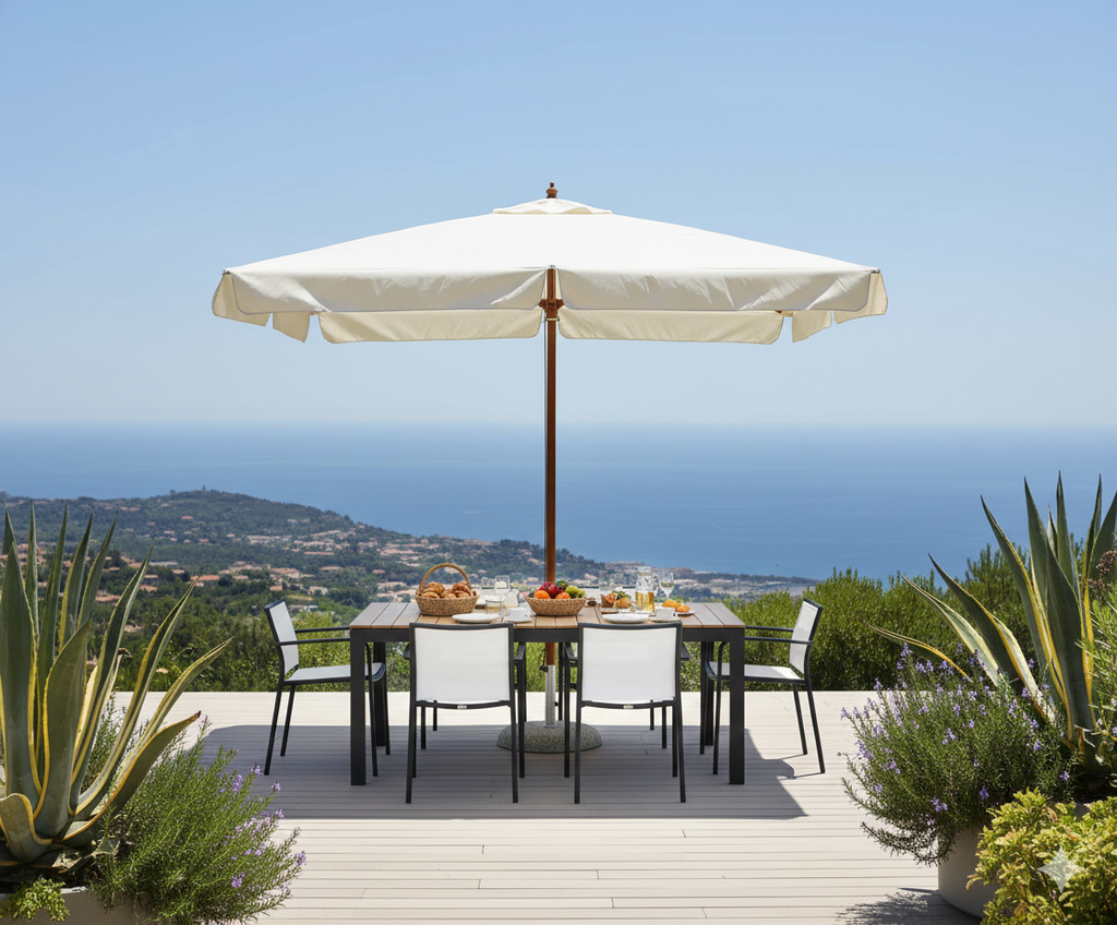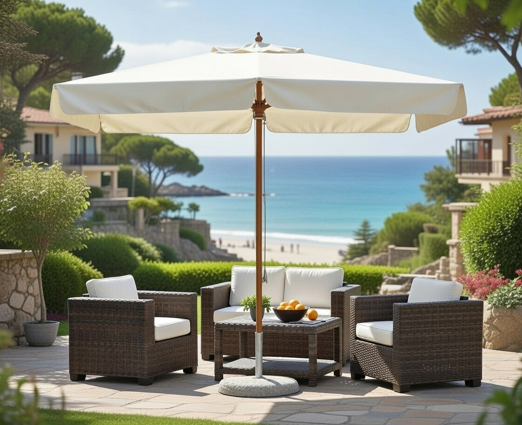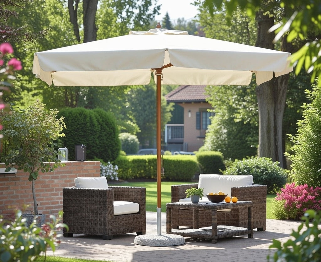 Vorghini De Lux Ecru Quadratischer Gartenschirm aus Holz 3X3m