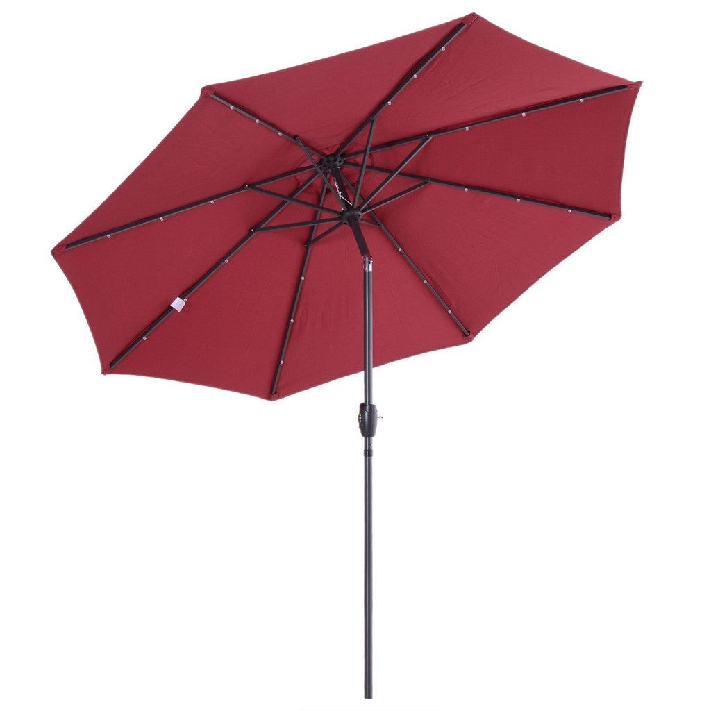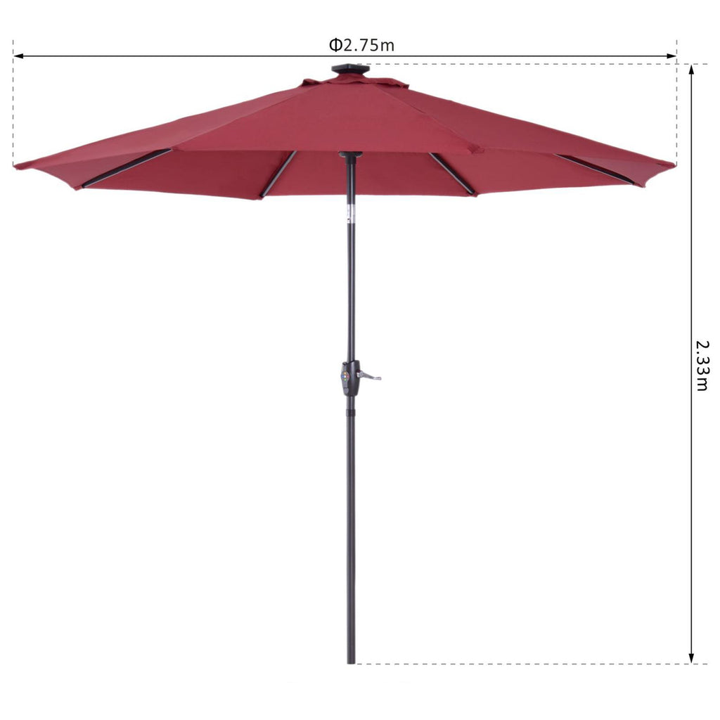 Gartenschirm aus Metall Ø2,75x2,33 m mit roten LED-Leuchten