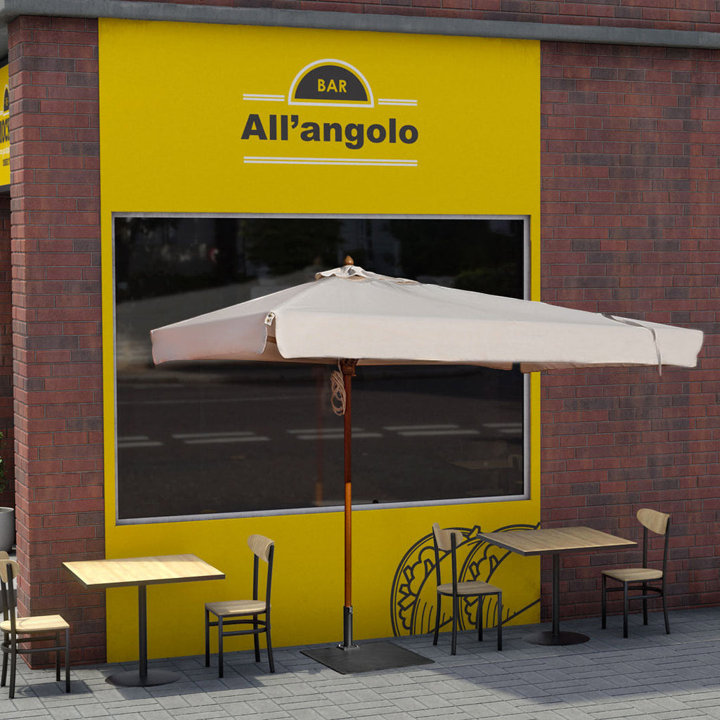 Halbmond-Gartenschirm aus Holz, 2 x 3 m, Ø 57 mm, ecrufarbenes Acrylgewebe