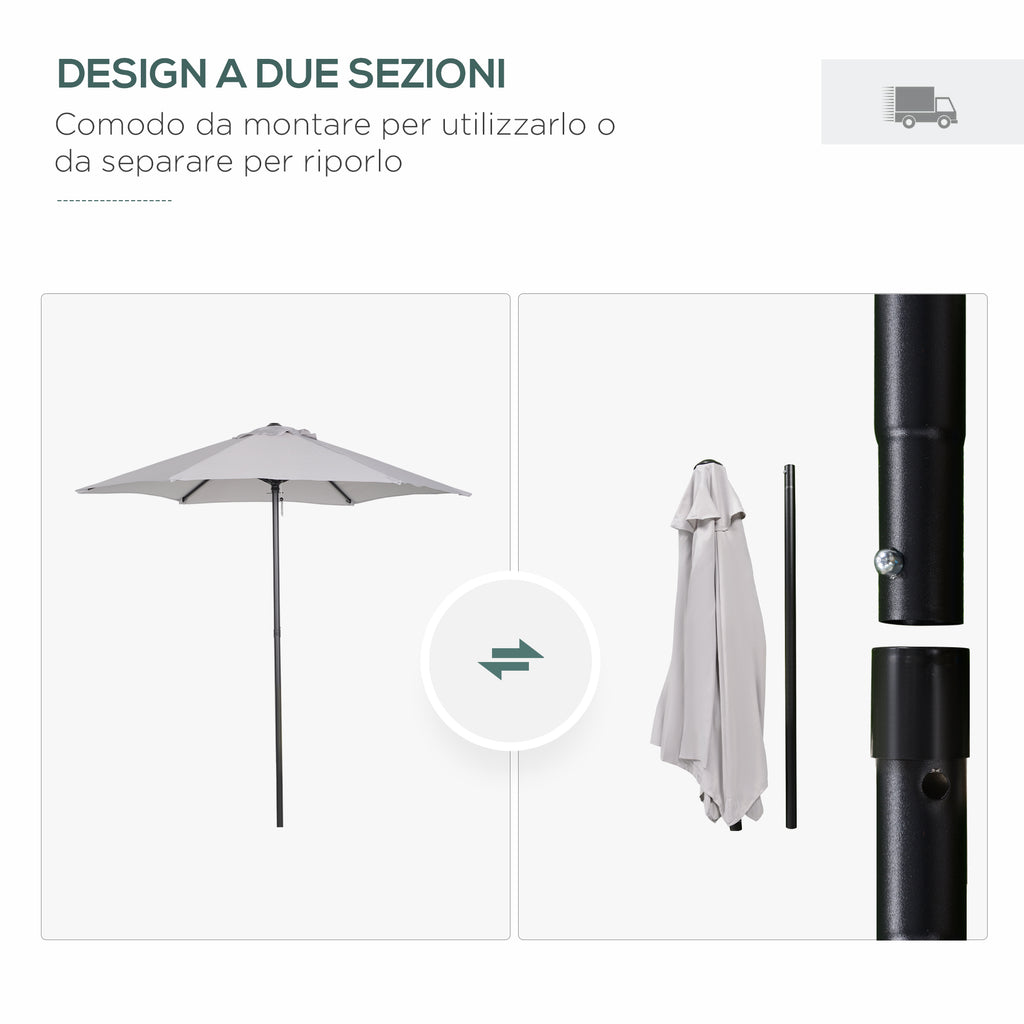 - ALUMINIUMSTANGE: Die zentrale Stange dieses Gartenschirms besteht aus pulverbeschichtetem Aluminium, eine Behandlung, die ihn vor Rost schützt und ihn robuster macht. 6 Metallrippen verbinden die Stange mit dem Polyestergewebedach.