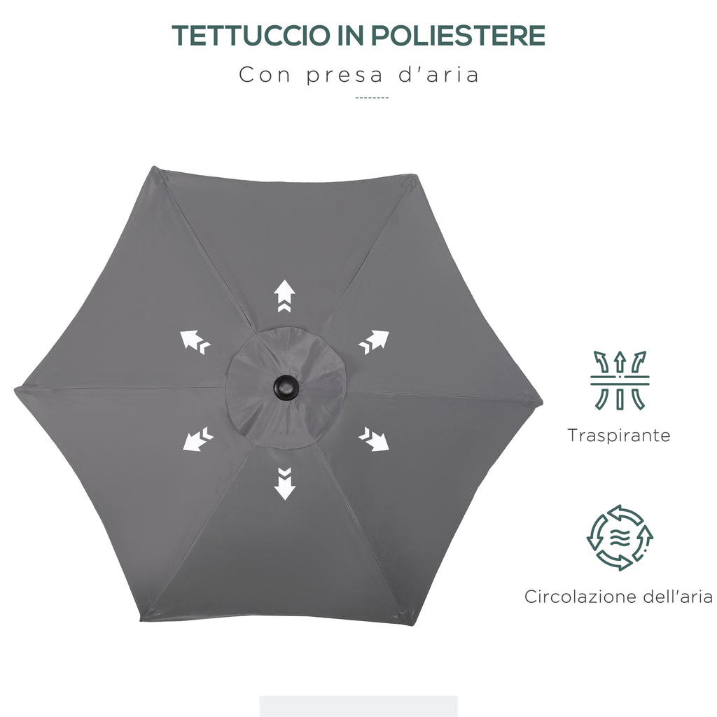 Ombrellone da Giardino Ø196x204H cm a 6 Stecche Grigio Scuro