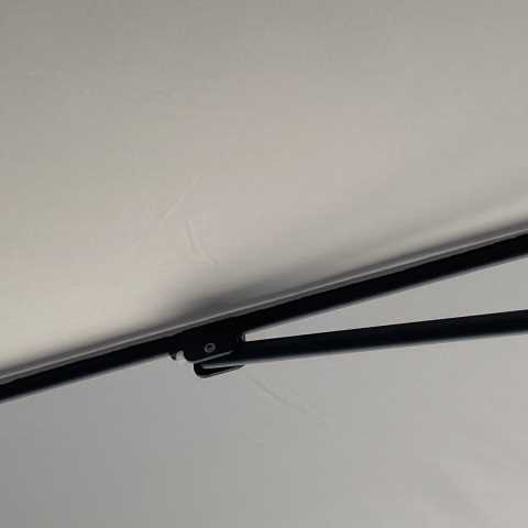 Ombrellone da giardino con struttura in alluminio nero, copertura in poliestere impermeabile da 220 gr, rivestimento in PA di colore ecrù. Dotato di palo e stecche in alluminio, superficie anodizzata a specchio, apertura a spinta manuale. Sprovvisto di base ma comprensivo di cover per proteggerlo. Ideale per creare un'area ombreggiata e accogliente all'aperto.